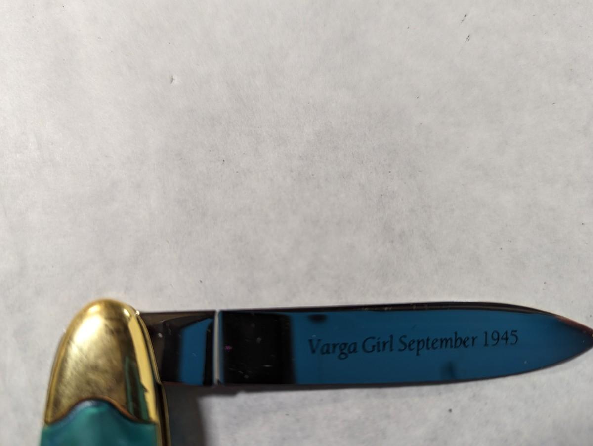 Double Blade Franklin Mint Varga Girl Pocket Knife September 1945/January 1944
