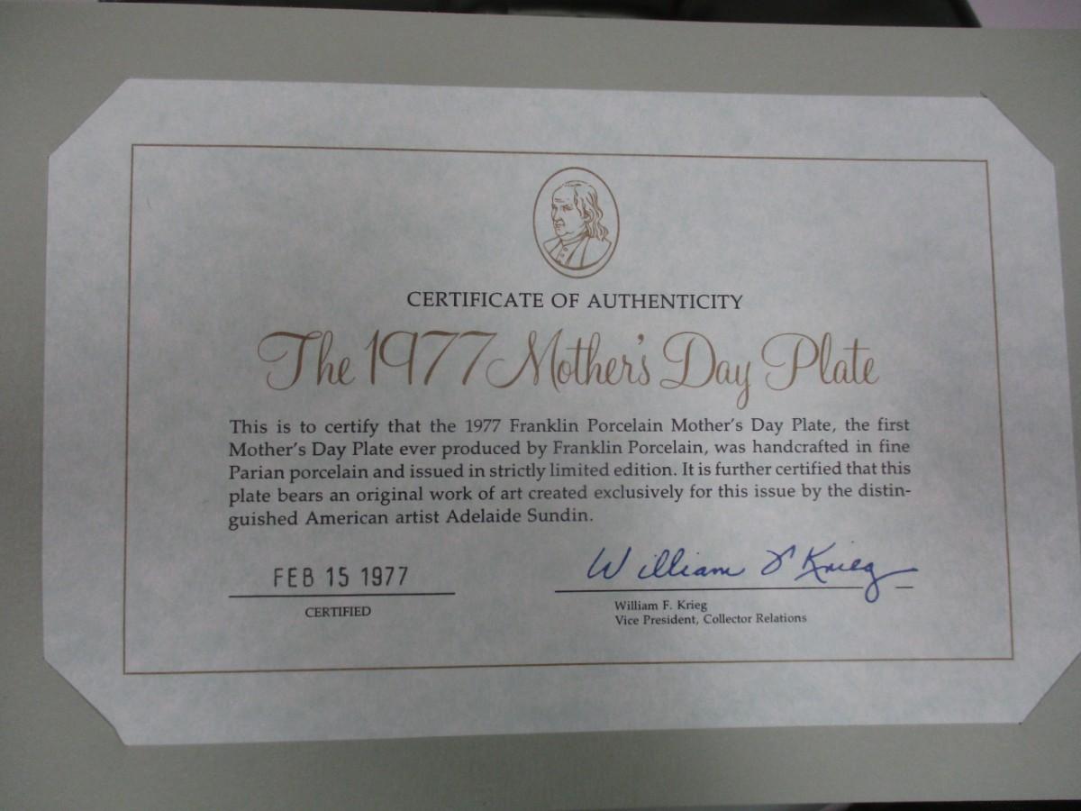 Franklin Porcelain Mother's Day Plate With Box & COA