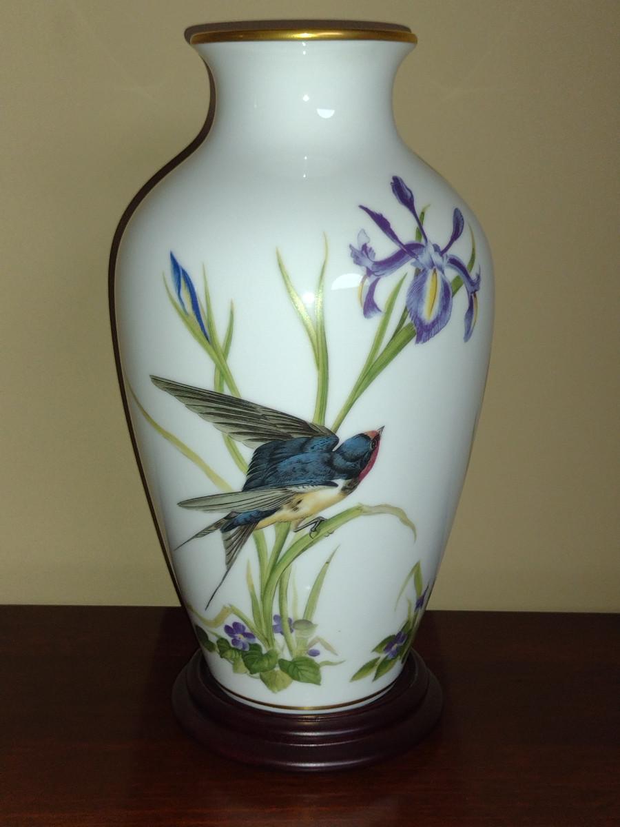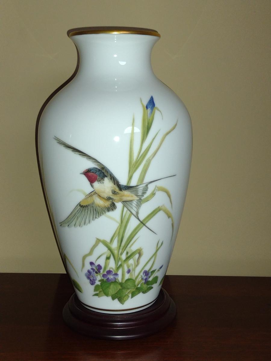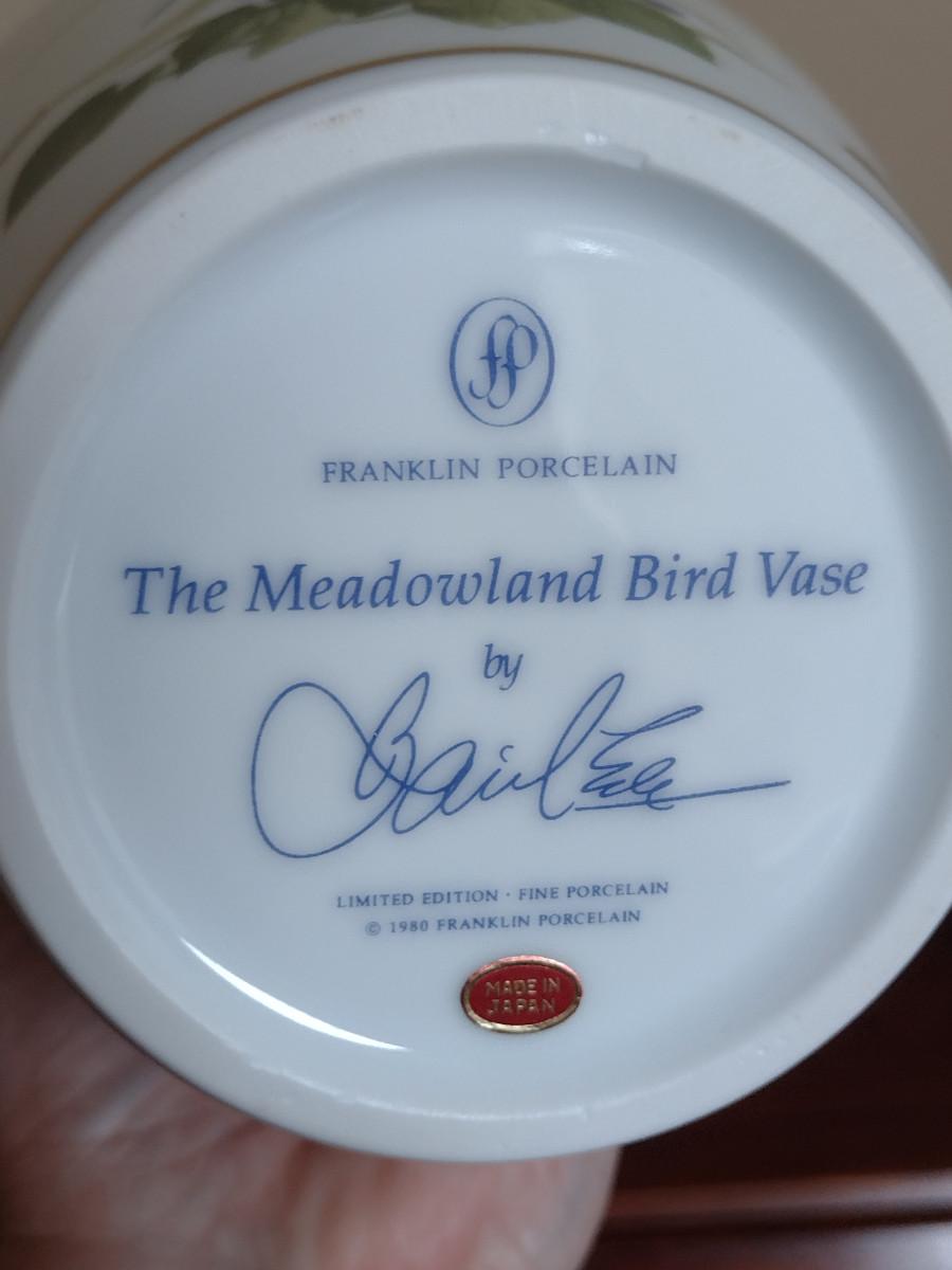 Franklin Porcelain 'The Meadowland Bird Vase' by Basil Ede- Approx 11 1/2" Tall