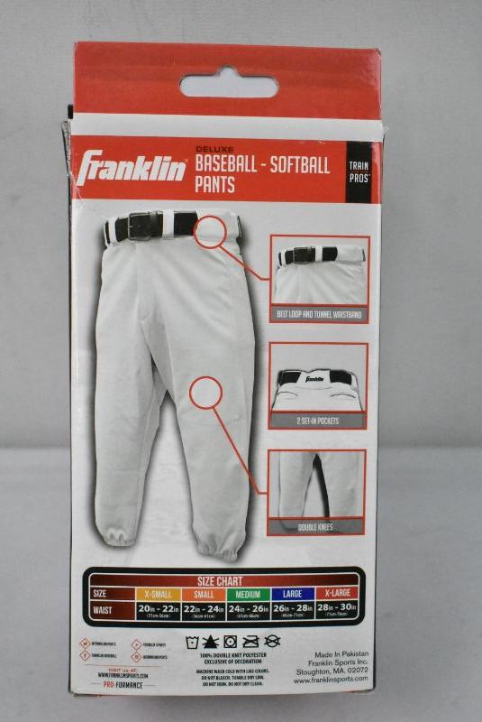 Franklin Sports Baseball/Softball Pants, White, Youth Size Small for Waist Size 22" - 24" - New