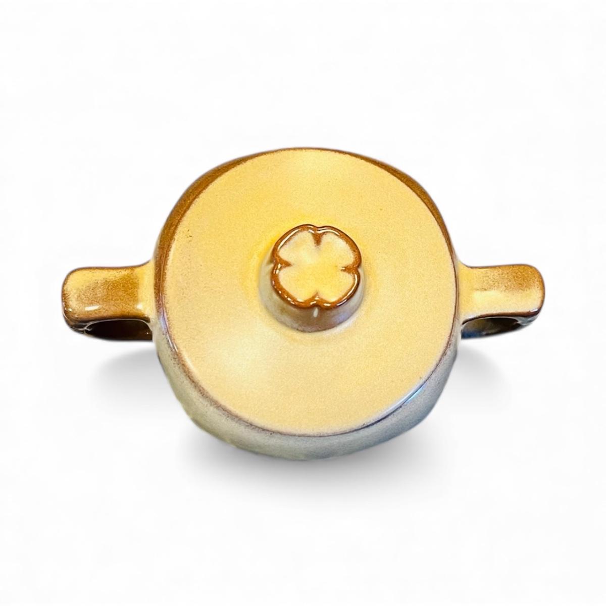 Add a touch of vintage charm to your collection with this exquisite Frankoma 4-Leaf Clover Cup. Made from high-quality ceramic, this unique piece features a beautifully detailed four-leaf clover design, symbolizing luck and good fortune. The cup is thoughtfully crafted with two sturdy handles, making it both a practical and decorative item.