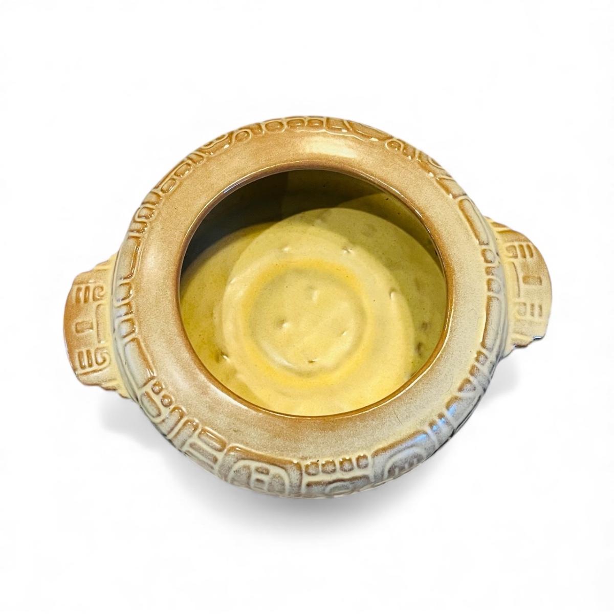 • Vintage Frankoma 7V Mayan Cooking Pot with intricate Mayan-inspired design