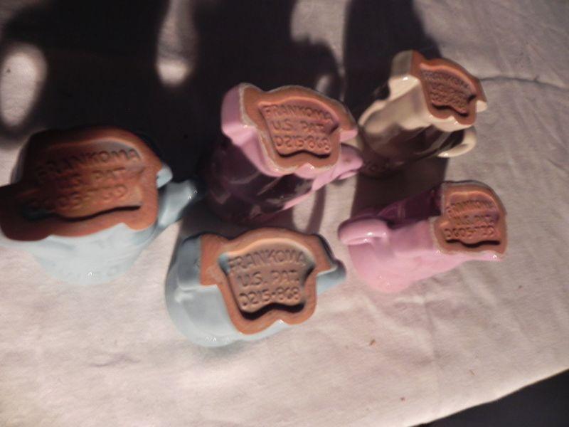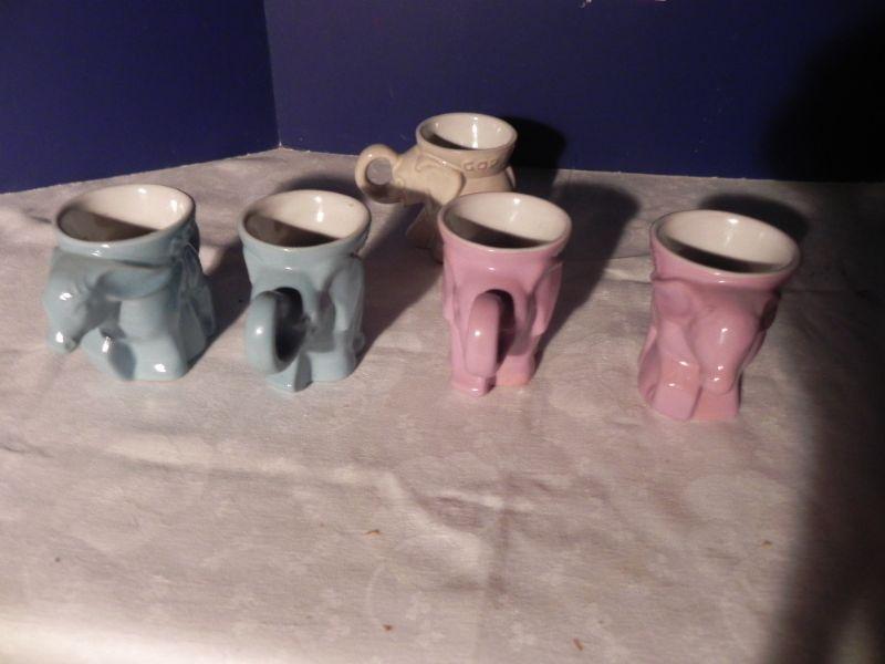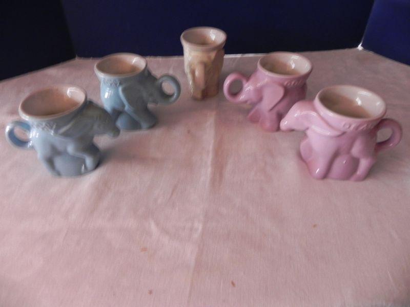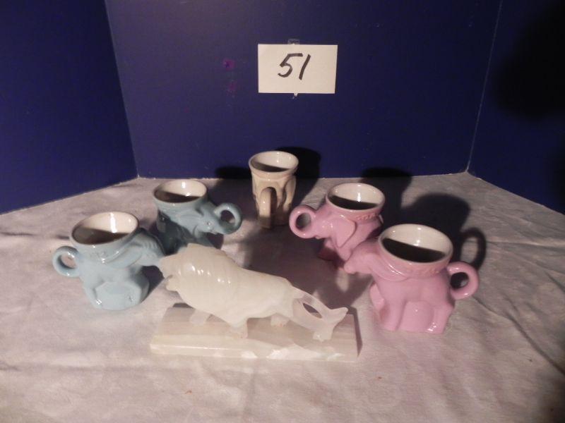 FRANKOMA POTTERY CUPS ELEPHANT/DONKEY AND MARBLE LION FIGURINE