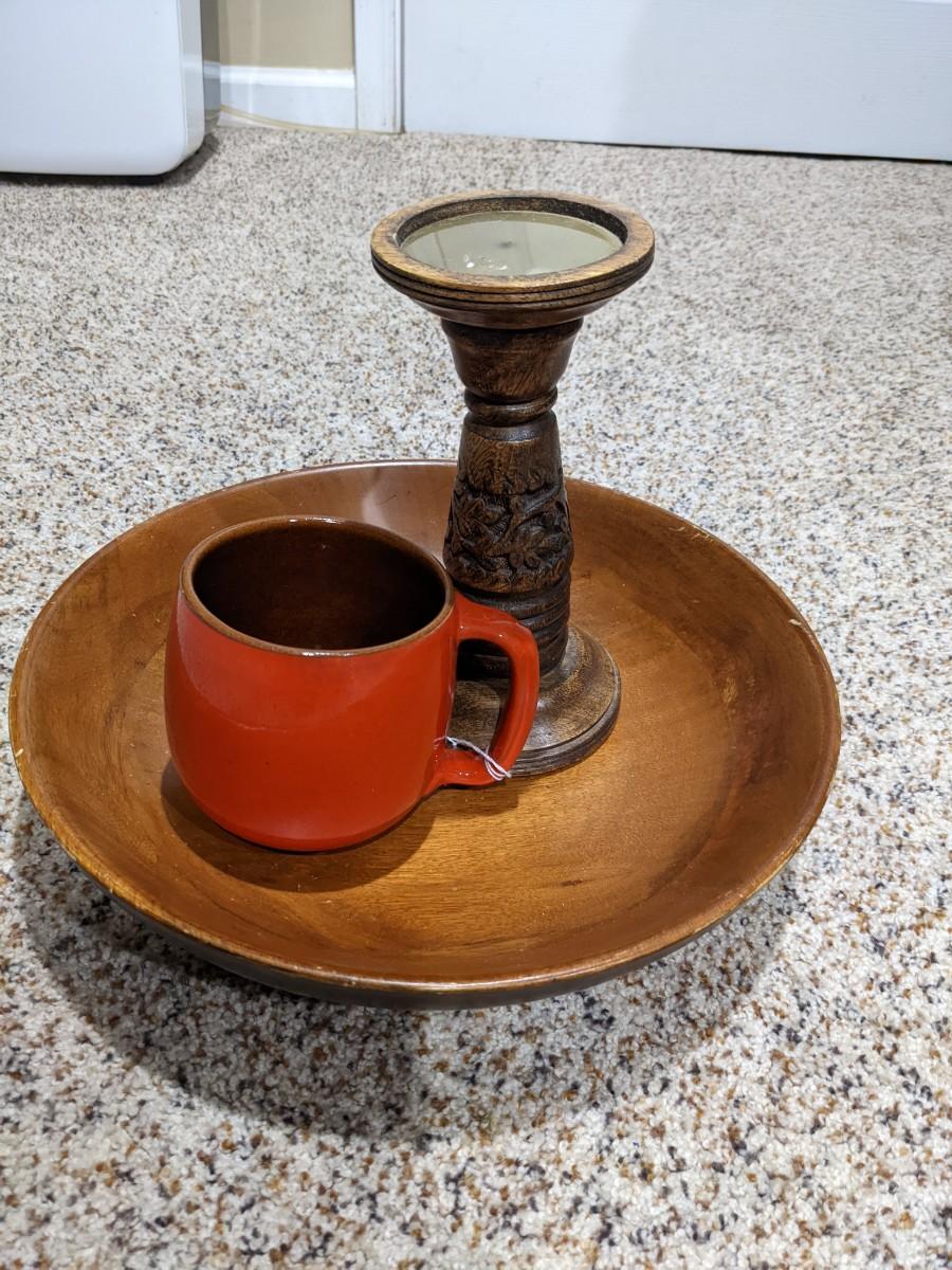 Frankoma pottery mug, boho candle holder, large décor bowl