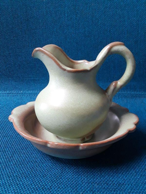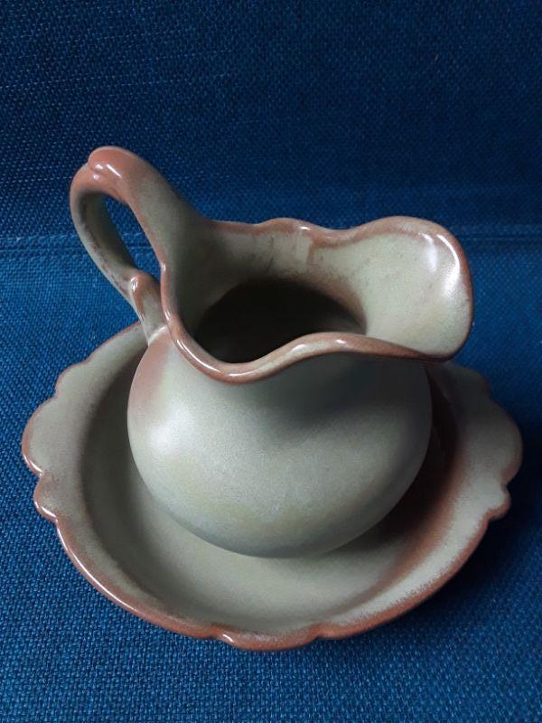 Frankoma Pottery Prairie Green Small Pitcher with Bowl 40A 40B