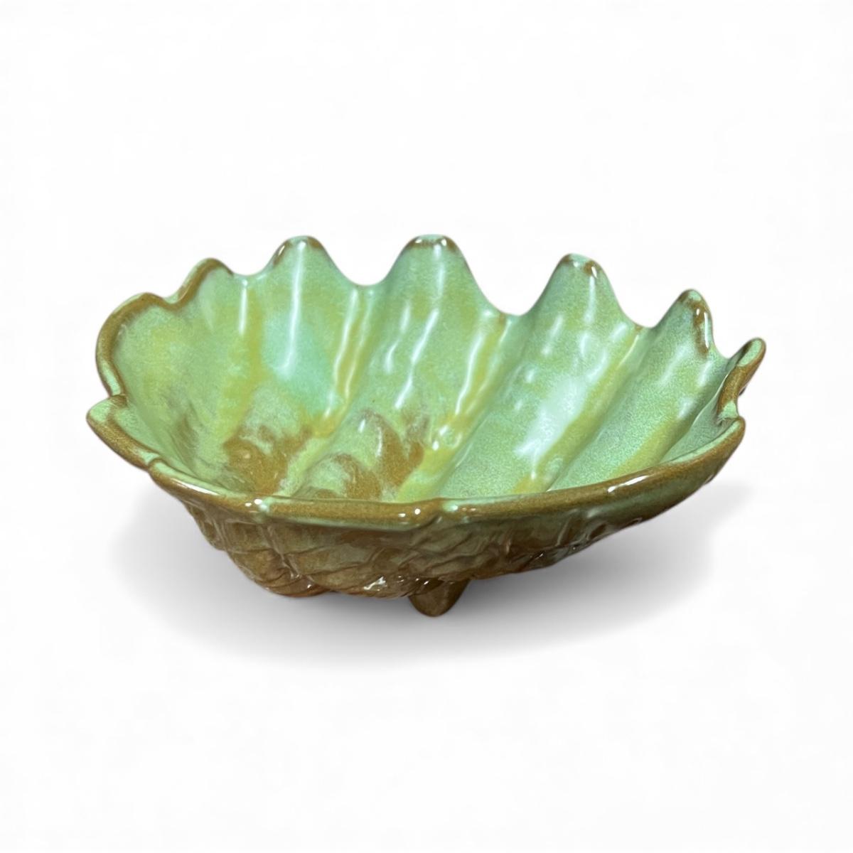 Add a touch of timeless Mid-Century charm to your décor with this stunning Frankoma Sea Clam Footed bowl in the coveted Green Prairie glaze. Known for its organic form and Oklahoma-crafted heritage, this piece showcases the classic wave-like ridges and subtle variations in glaze that make Frankoma pottery so collectible.