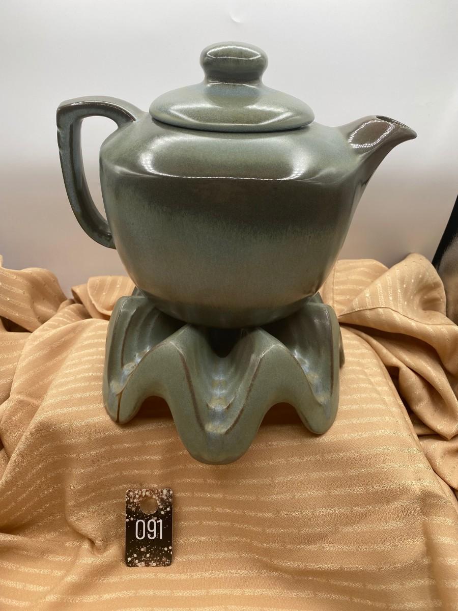 Warmer is 8 inch diameter, teapot is 7 inches tall