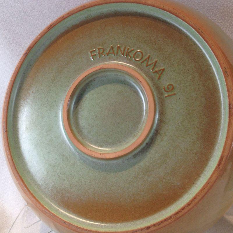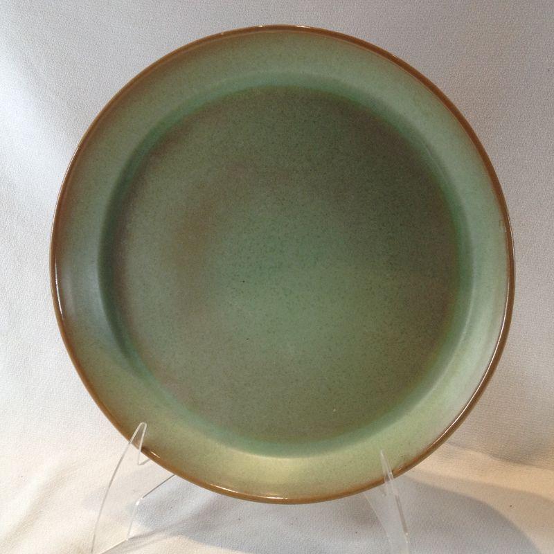 This is another Frankoma piece in the traditional California-era brown and green glaze. It could be used as a shallow bowl, tray or a deep-rimmed plate. It is in very good condition and ready for your display cabinet, shelf or table. Frankoma Pottery is an American pottery company located in Sapulpa, Oklahoma. The company is widely known for its sculptures and dinnerware although the company made many other products including figurines, trivets, and vases. All Frankoma pottery is made in the U.S. from locally dug clay.