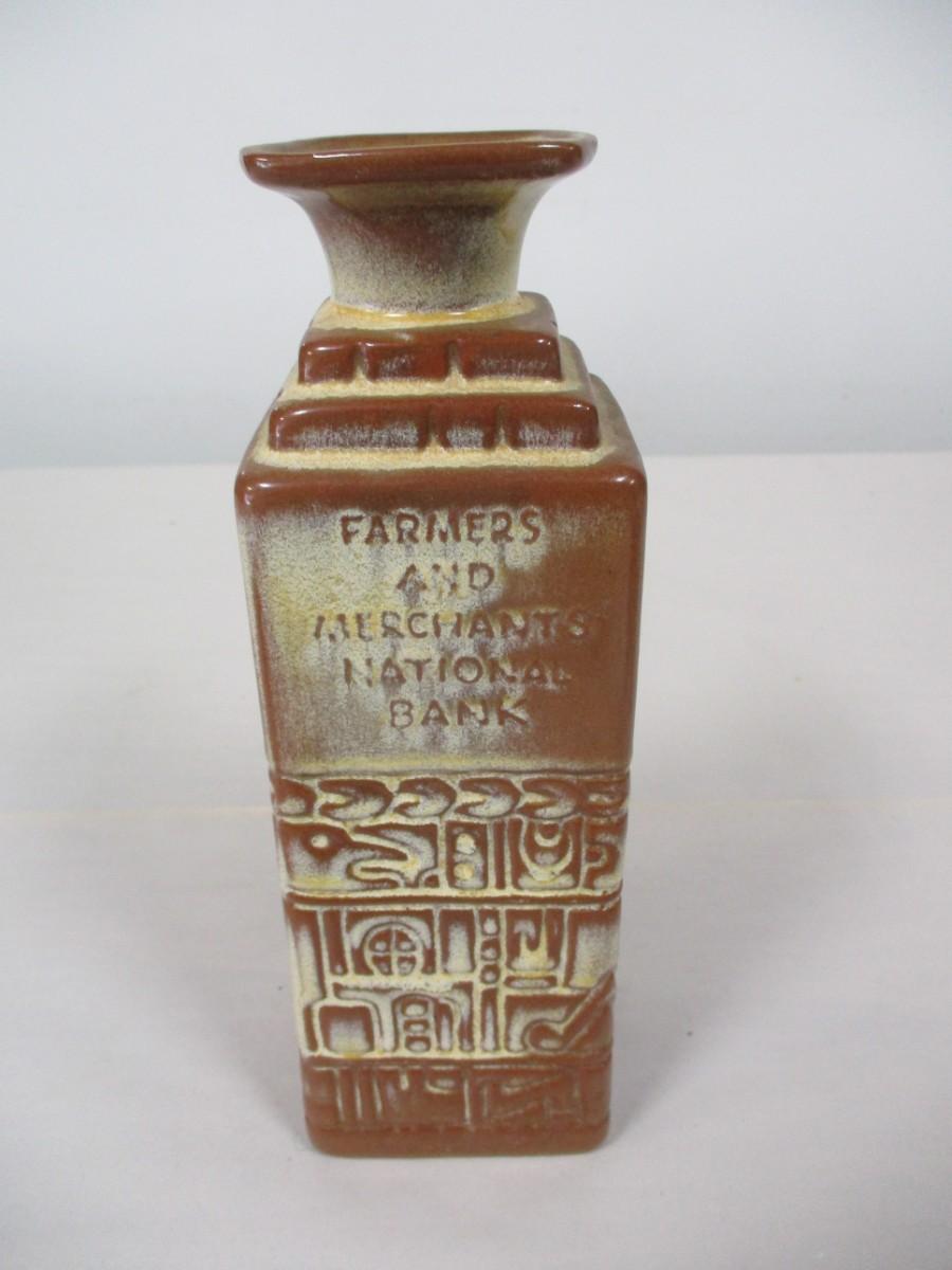 Frankoma Vase Aztec Mayan Farmers and Merchants Bank