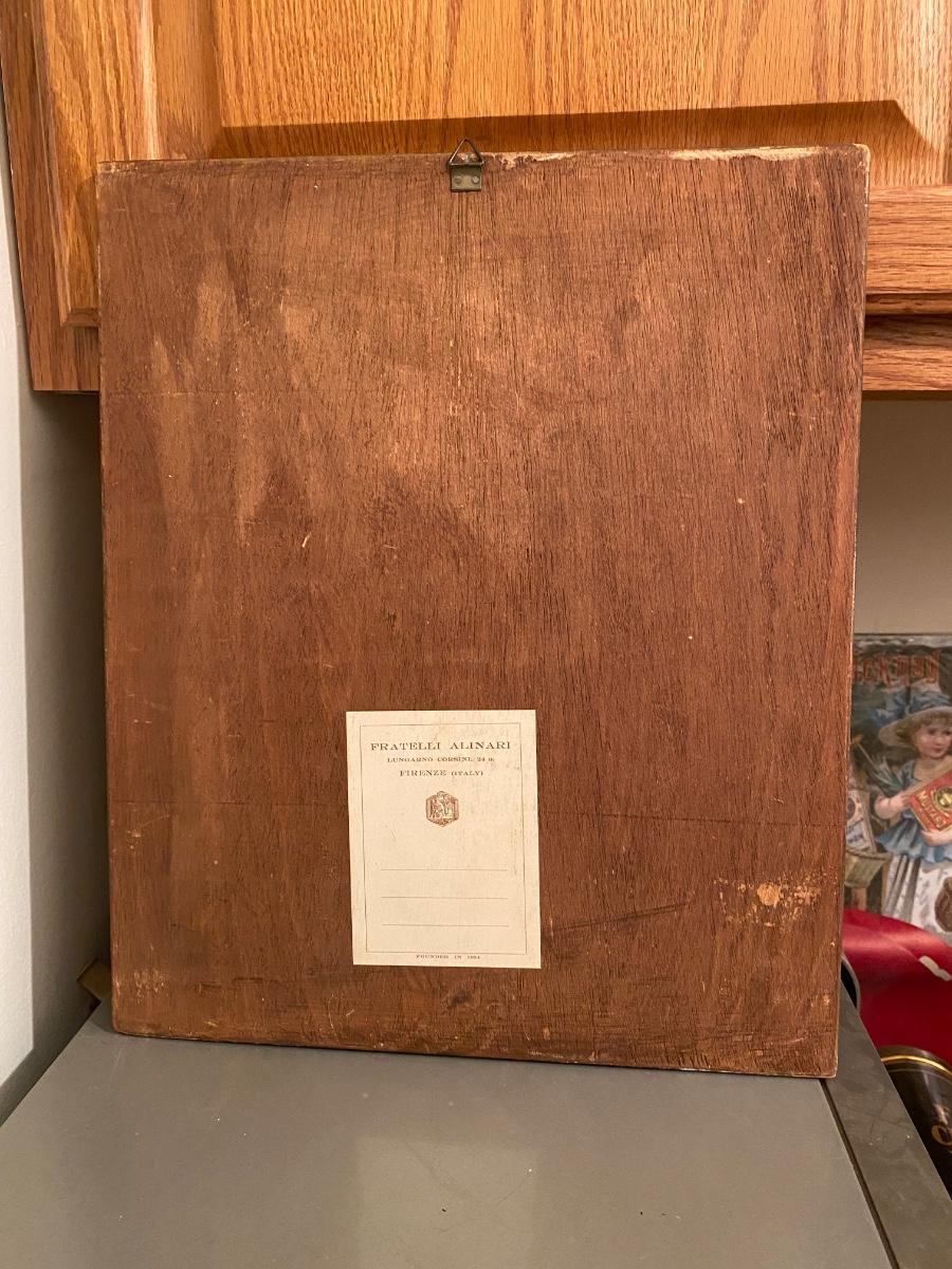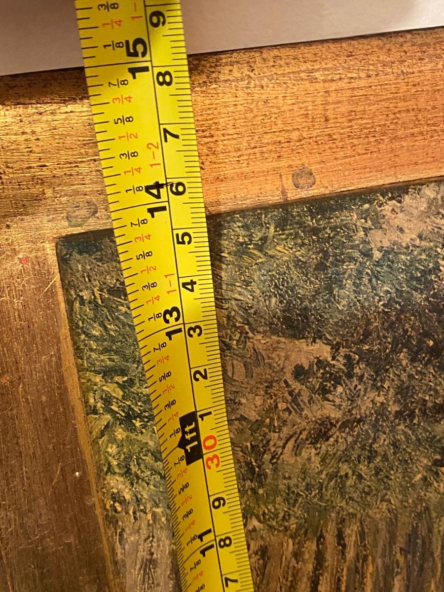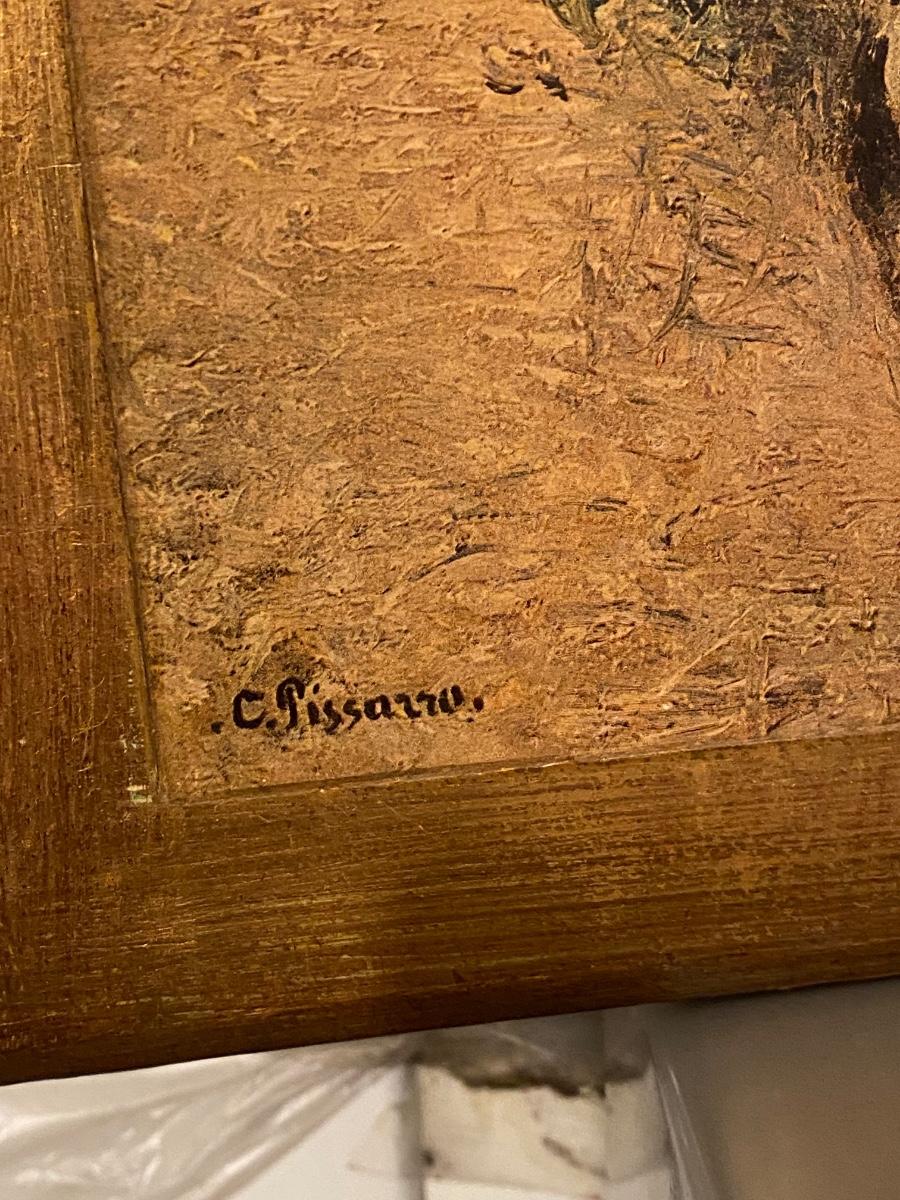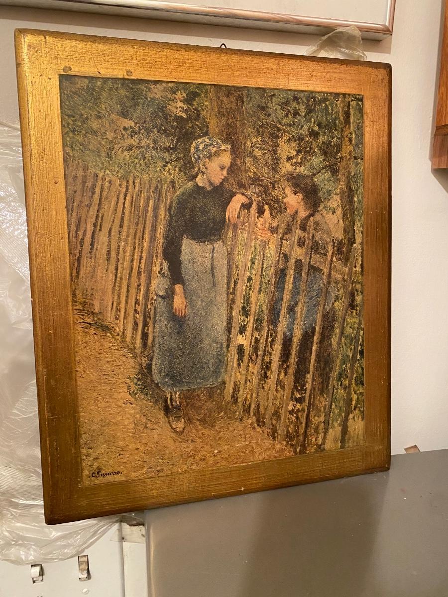 This is a beautiful reproduction artwork of the great French artist "Camille Pizzarro". The print is decoupaged onto a piece of wood, with a gold leaf border. It measures approximately 15" in length, and 12 1/2" in width