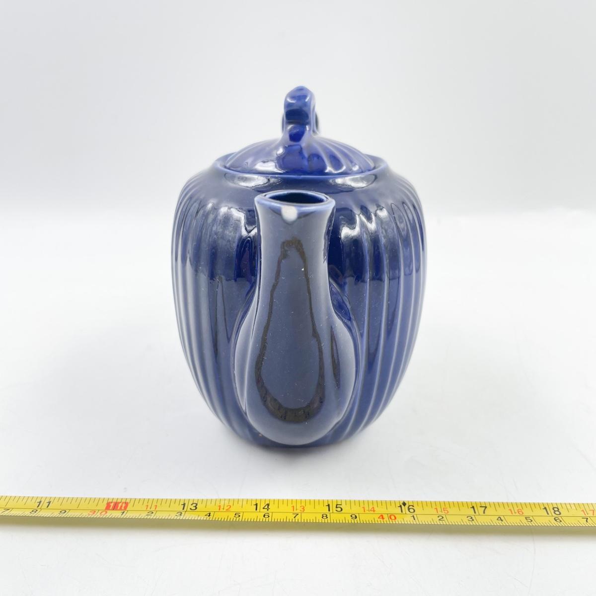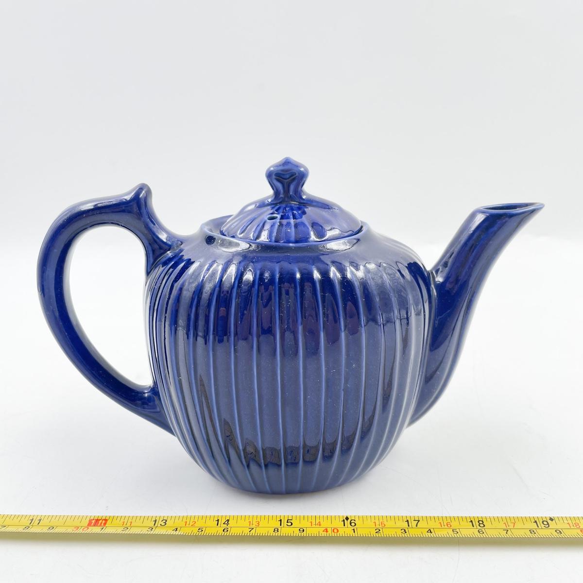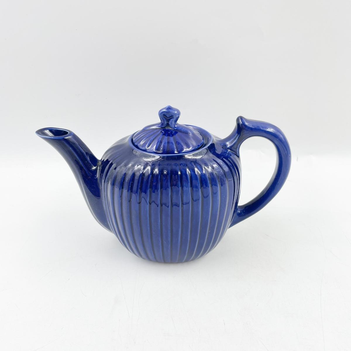 FRAUNFELTER CHINA COBALT BLUE RIBBED TEAPOT