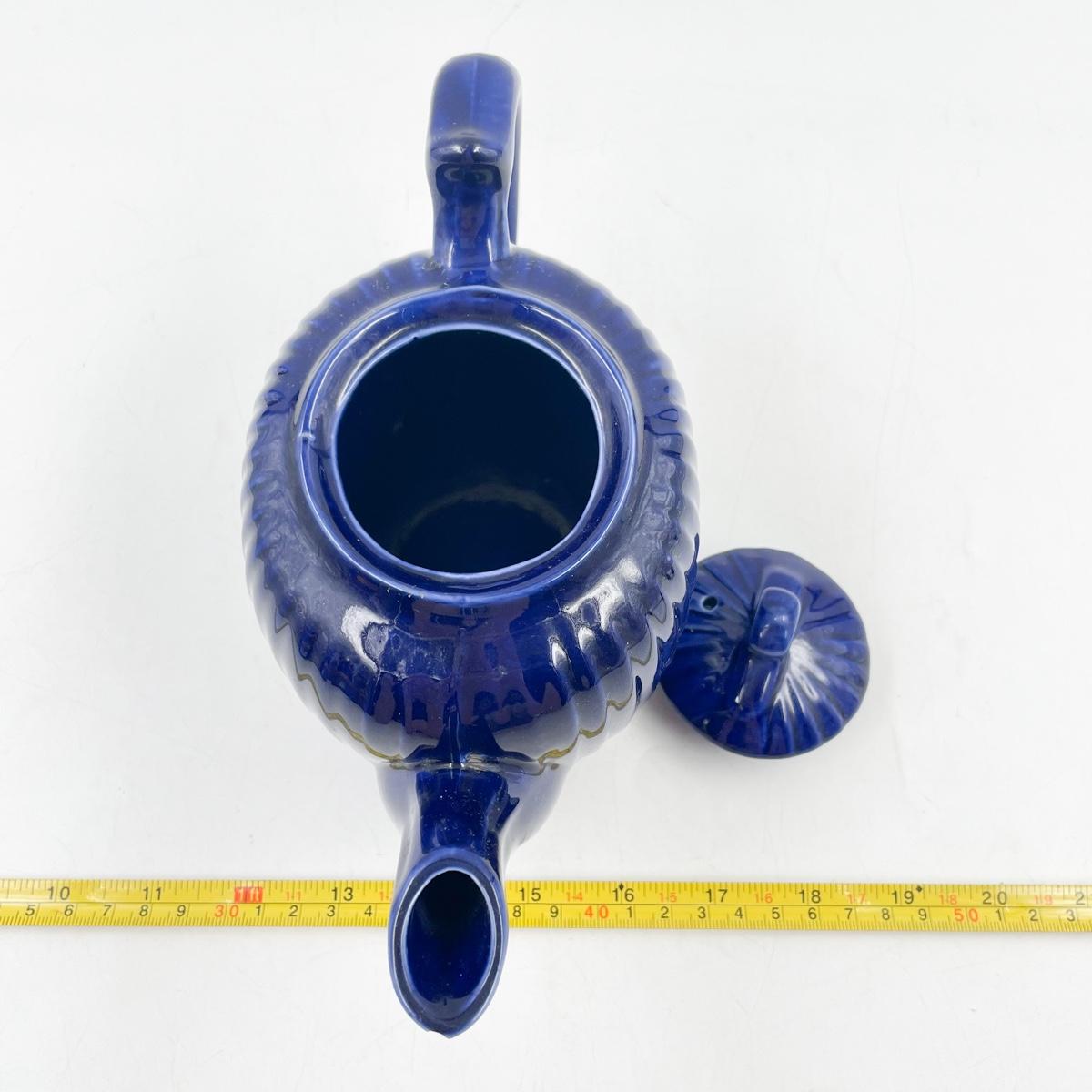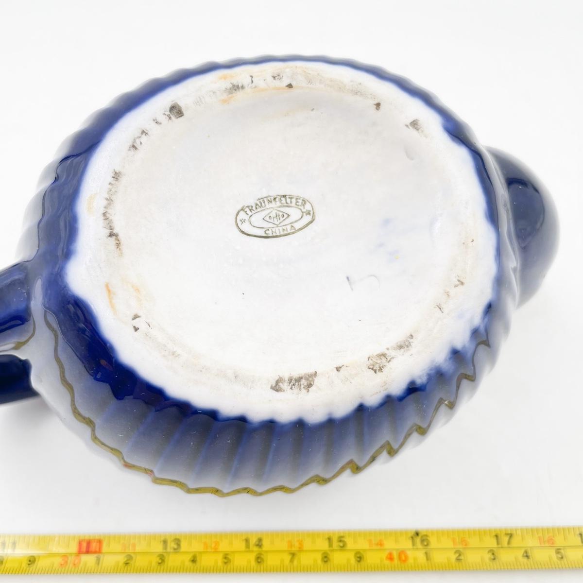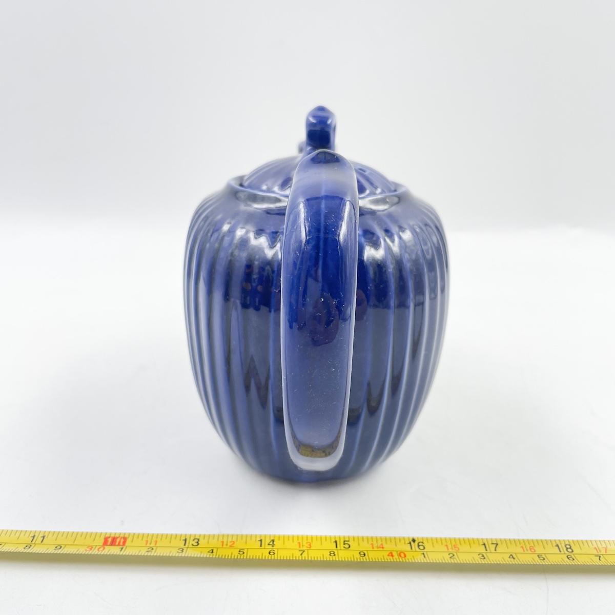 FRAUNFELTER CHINA COBALT BLUE RIBBED TEAPOT