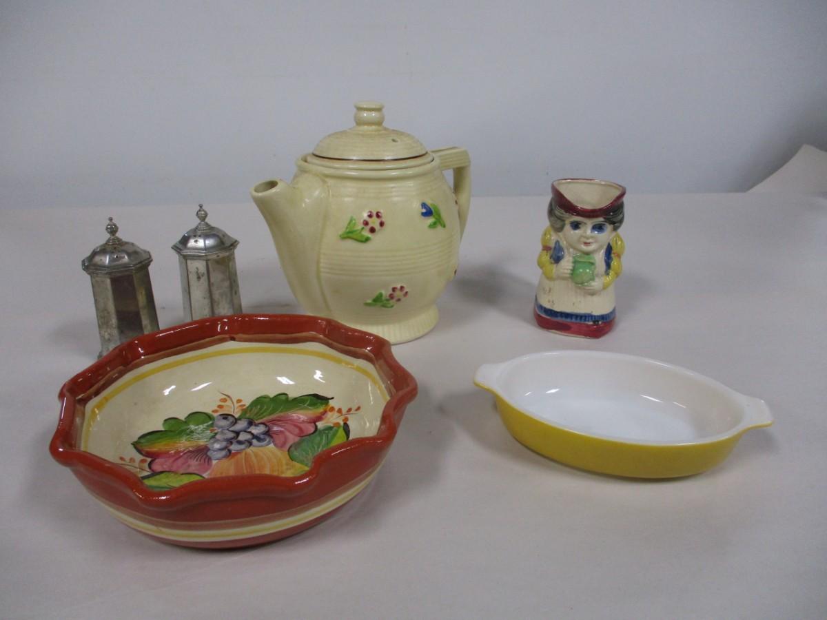 Fraunfelter Thermo Proof Teapot Shakers Pyrex Dish Creamer Hand Painted Pottery Dish