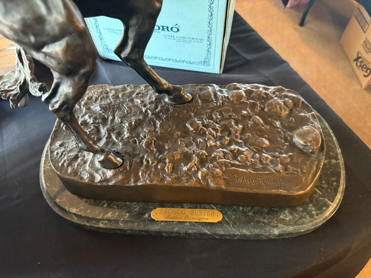 Frederic Remington Bronze Statue “Bronco Buster” on Marble Base