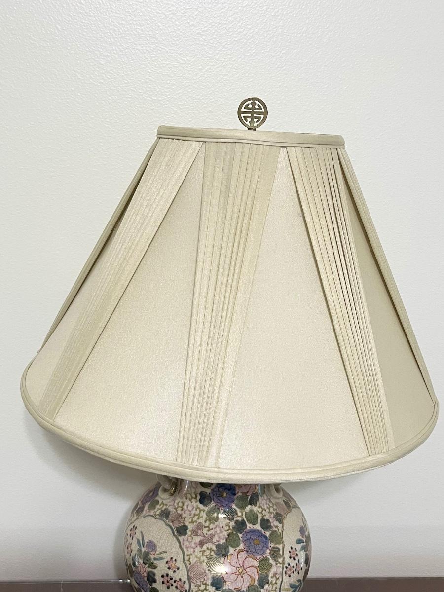 Floral Motif ~ Brass Accents ~ 32” H x 20” Round Lampshade