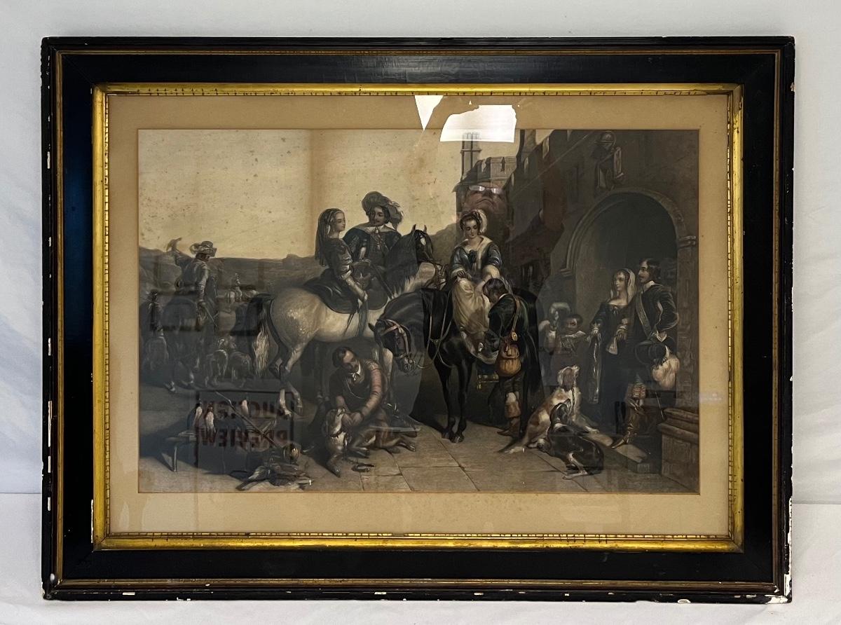 There is some foxing around the outer edges and possibly some darkening; otherwise there are no signs of serious damage. Frame shows signs of age related wear. Measurement: 45" W x 35" H. [LV]