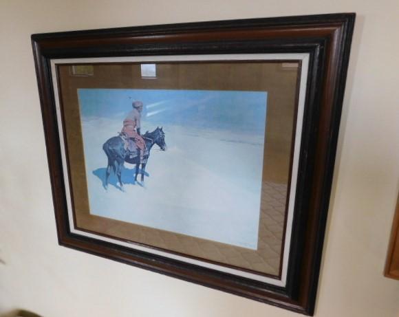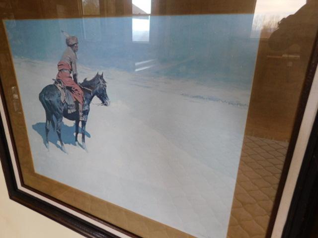 Fredric Remington Print 'The Scout: Friends or Enemies?' Framed 37"x31" nicely framed and matted.
