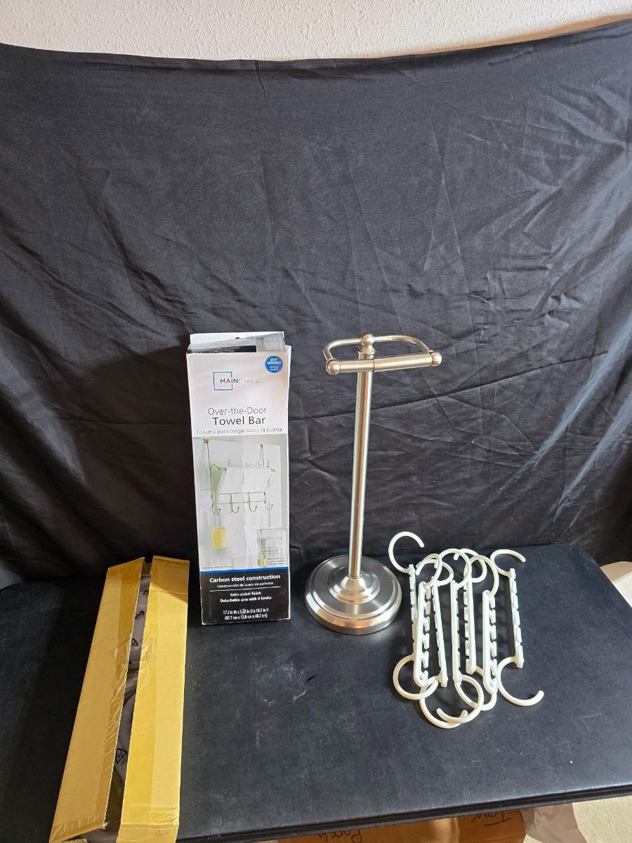 Free standing bathroom tissue holder - Over the door towel bars and closet organizing hooks