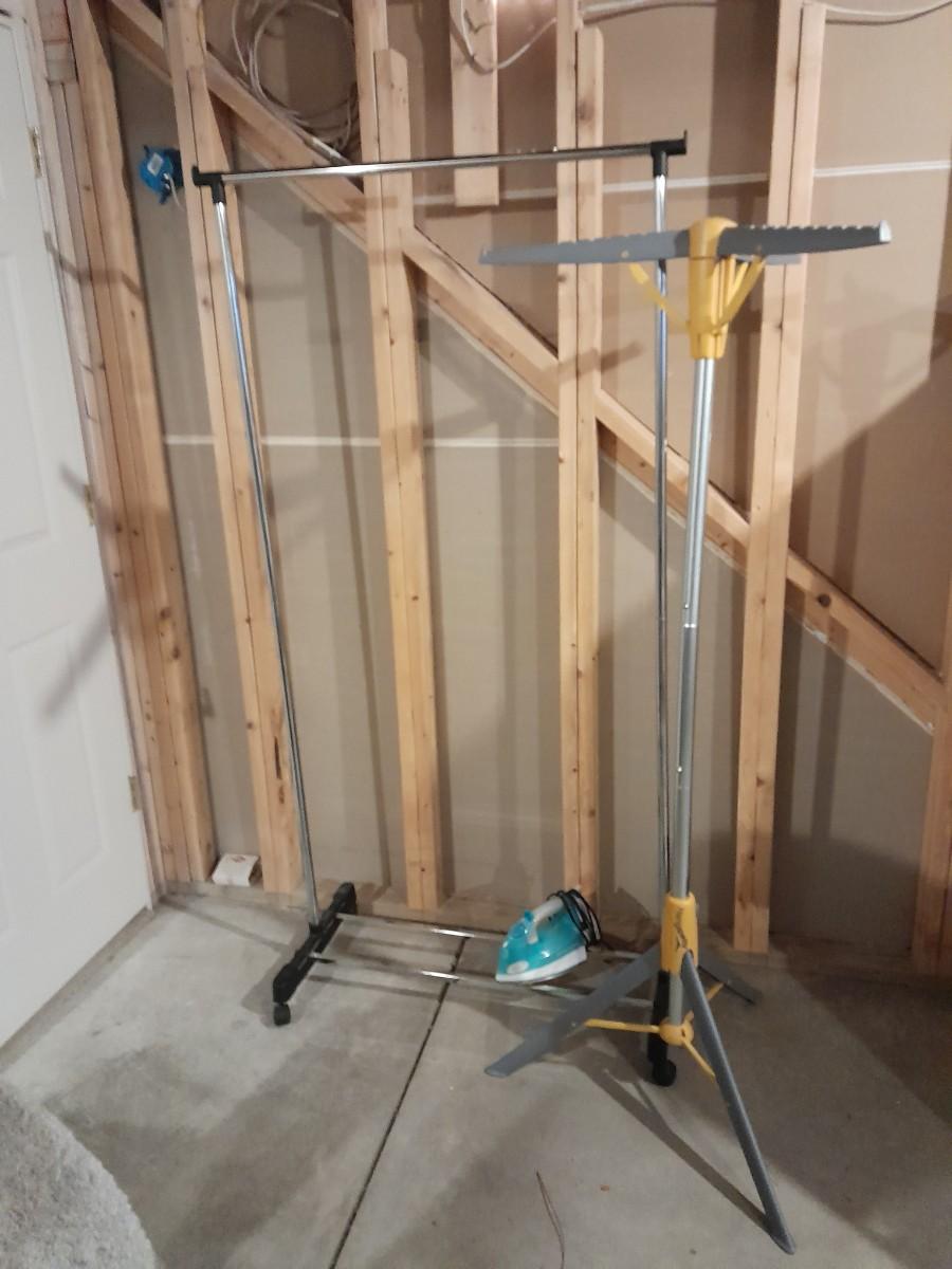 FREE STANDING CLOTHES RACK, PORTABLE FOLDING STORAGE HANGAWAY RACK & CLOTHES IRON
