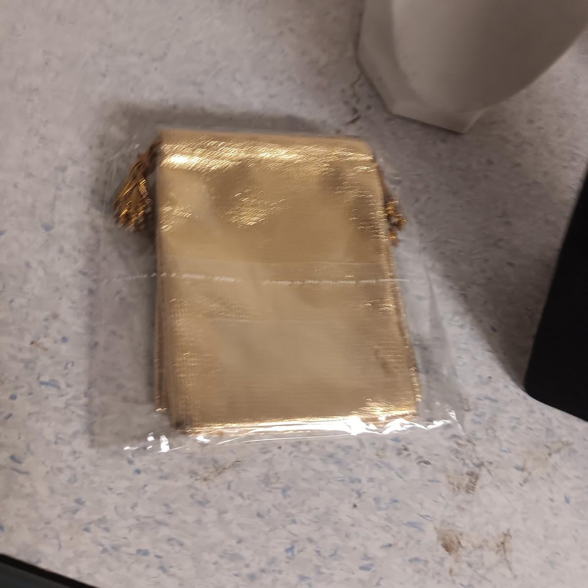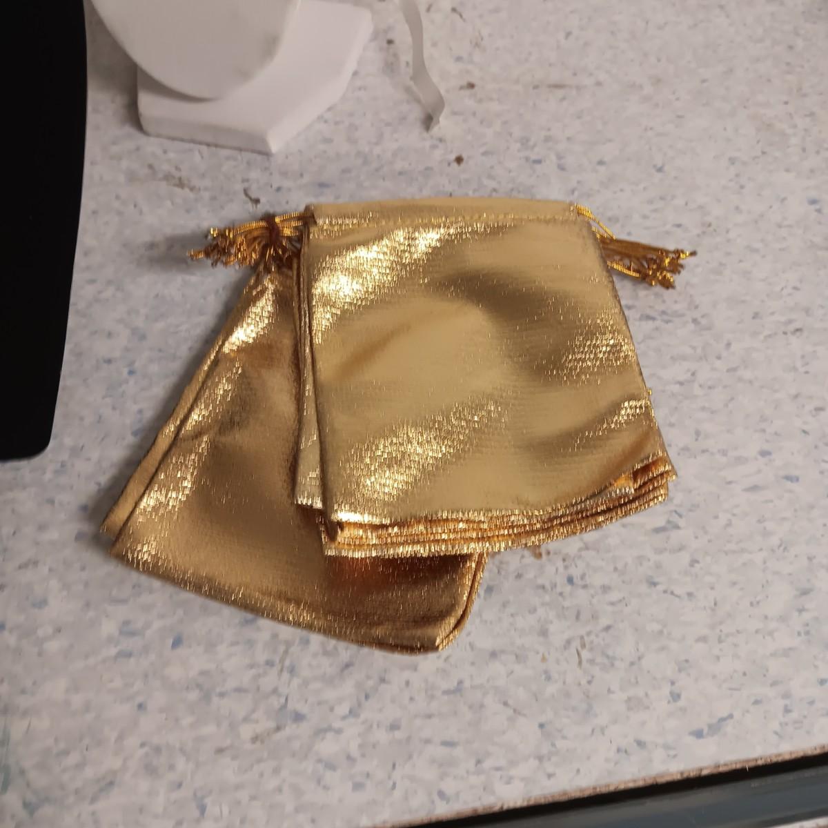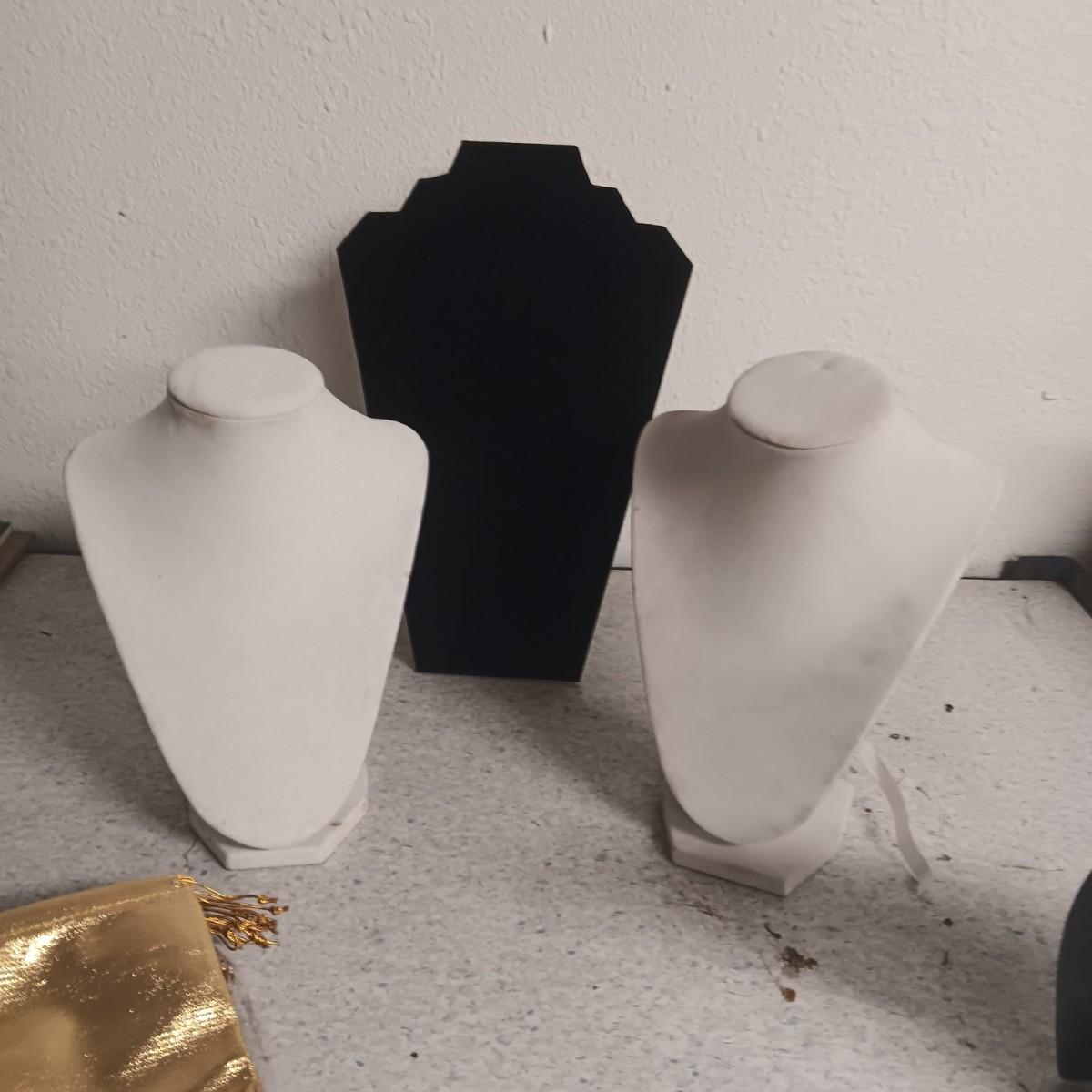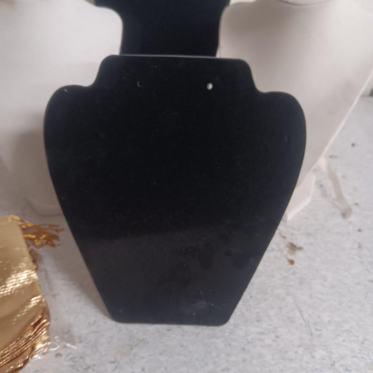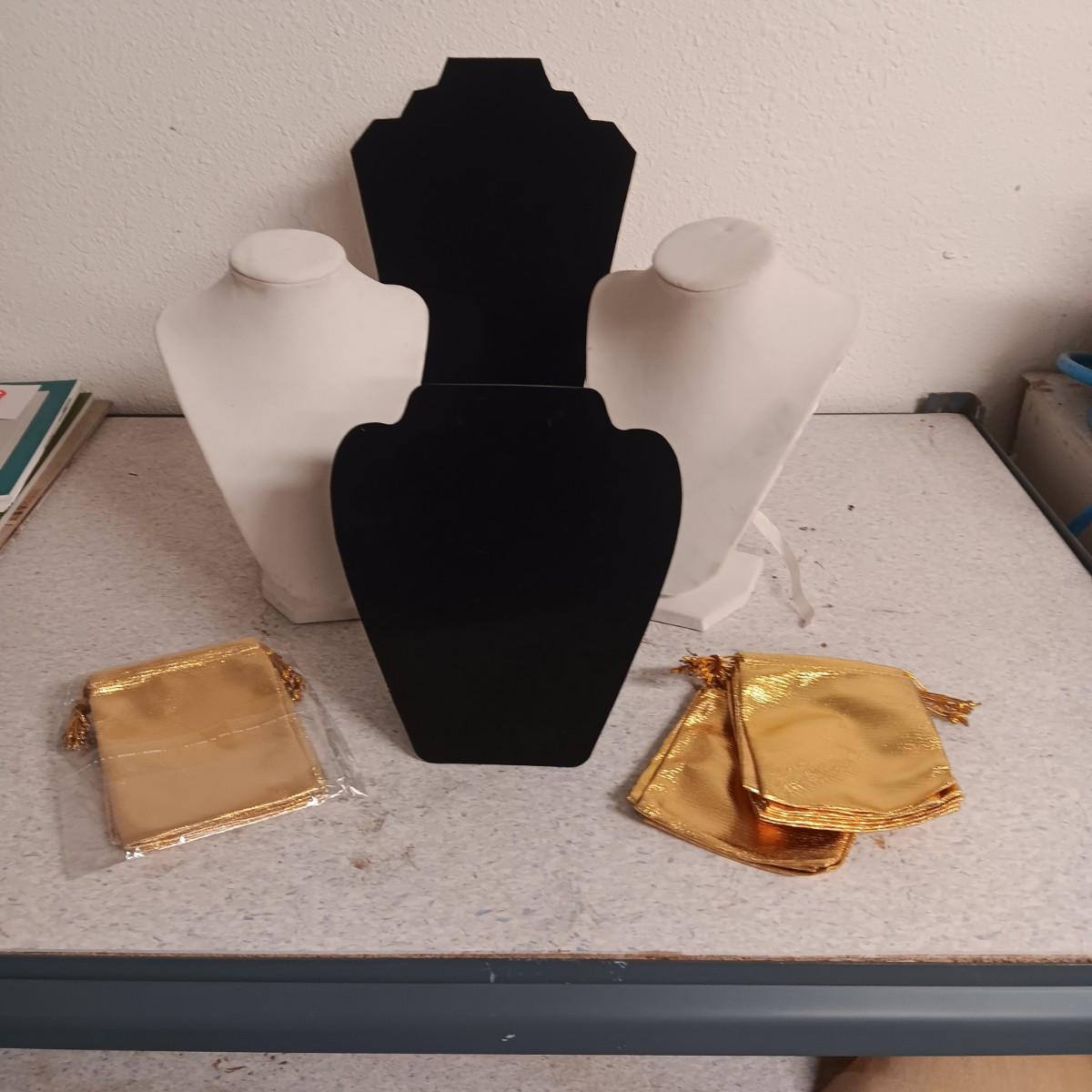 FREE STANDING JEWELRY DISPLAYS AND GOLD DRAWSTRING BAGS