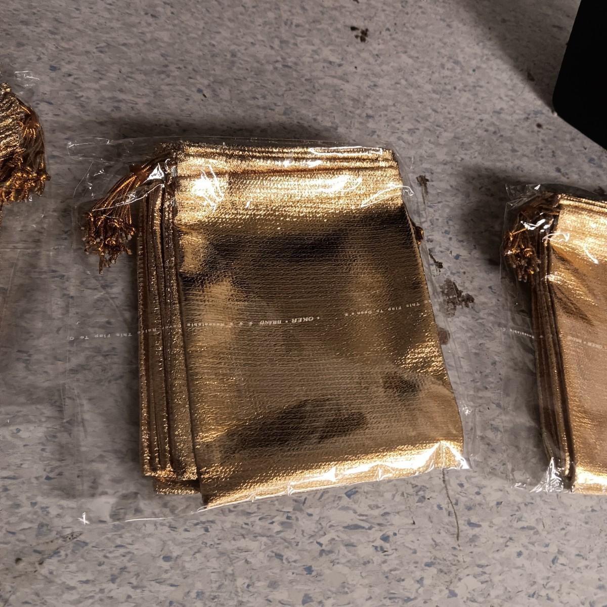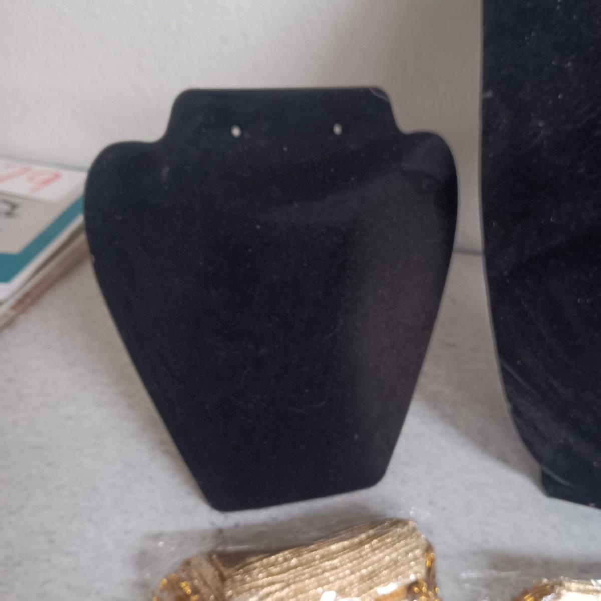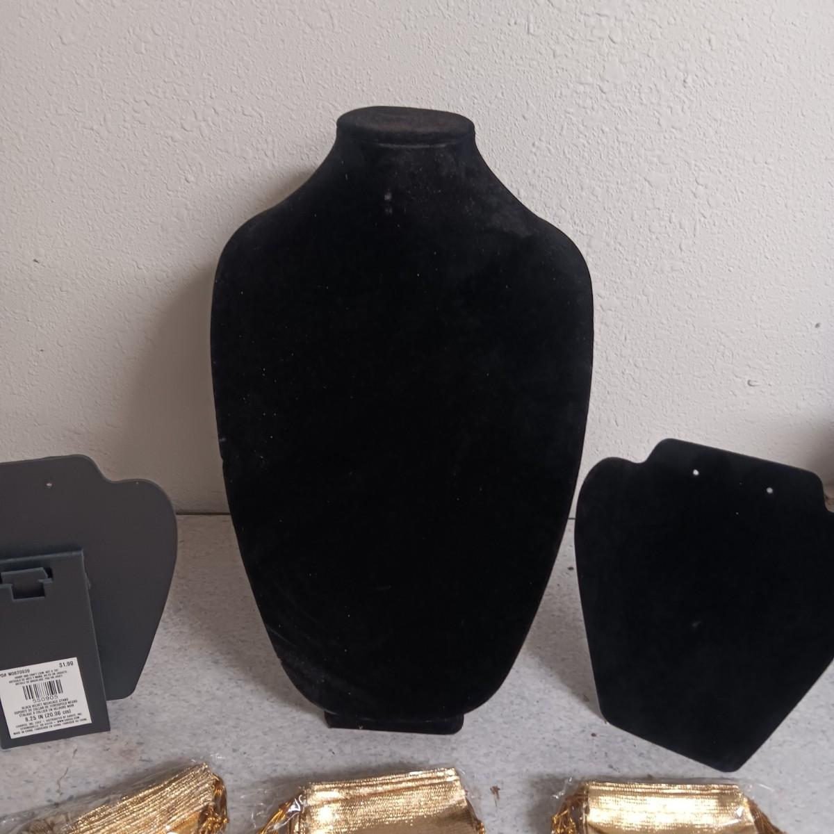 FREE STANDING JEWELRY DISPLAYS AND GOLD DRAWSTRING BAGS