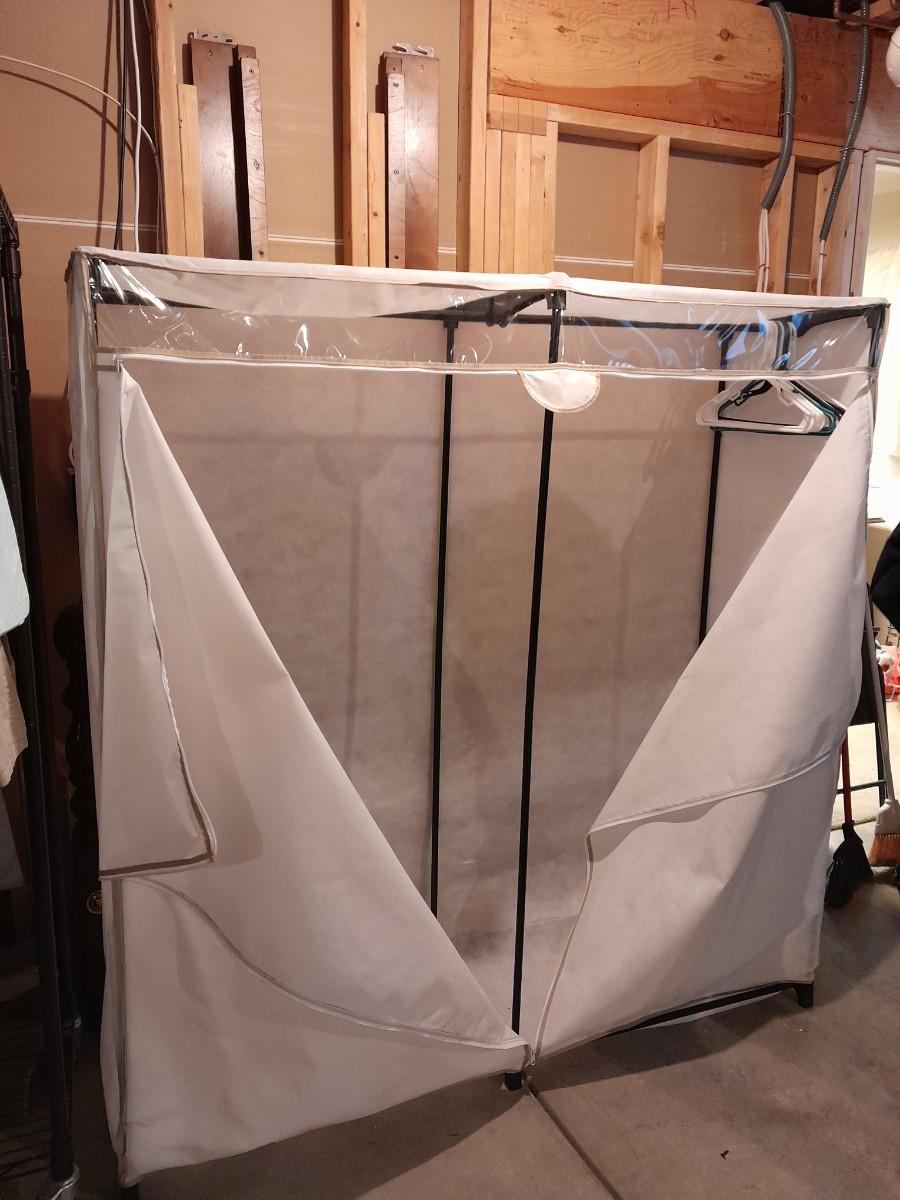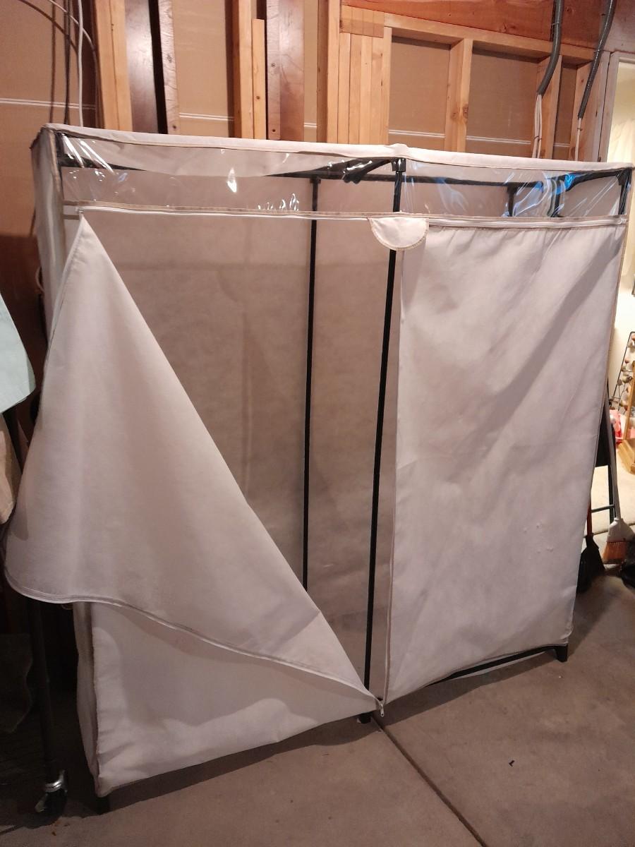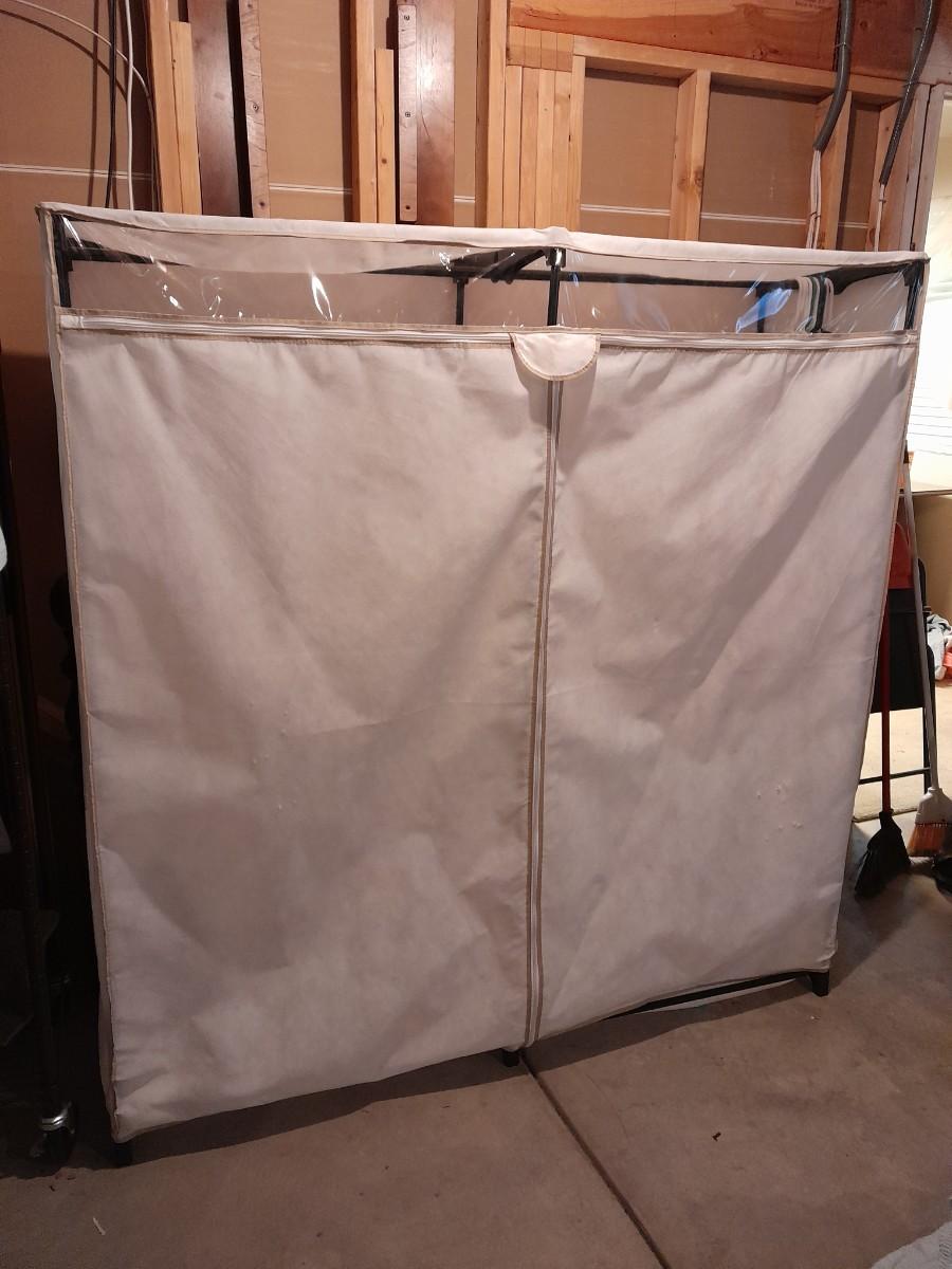 FREE STANDING PORTABLE CLOTHES CLOSET 63" X 60" X 20" (has some snags on side as shown)