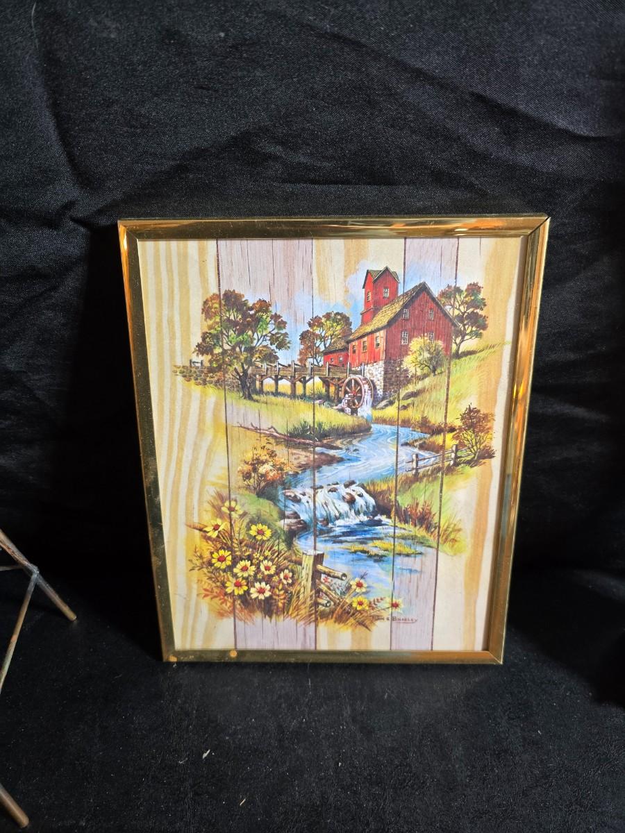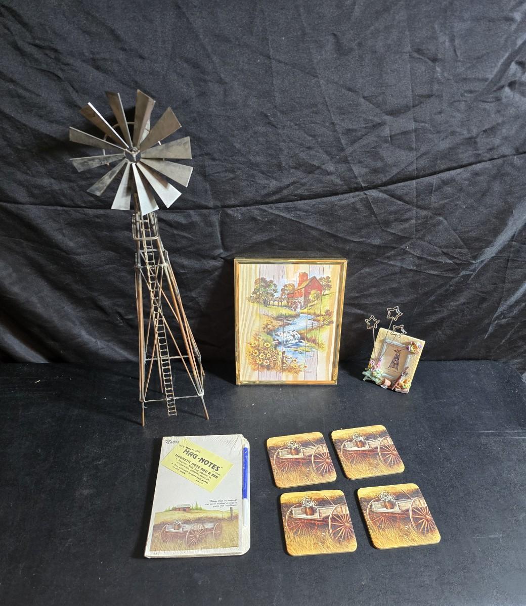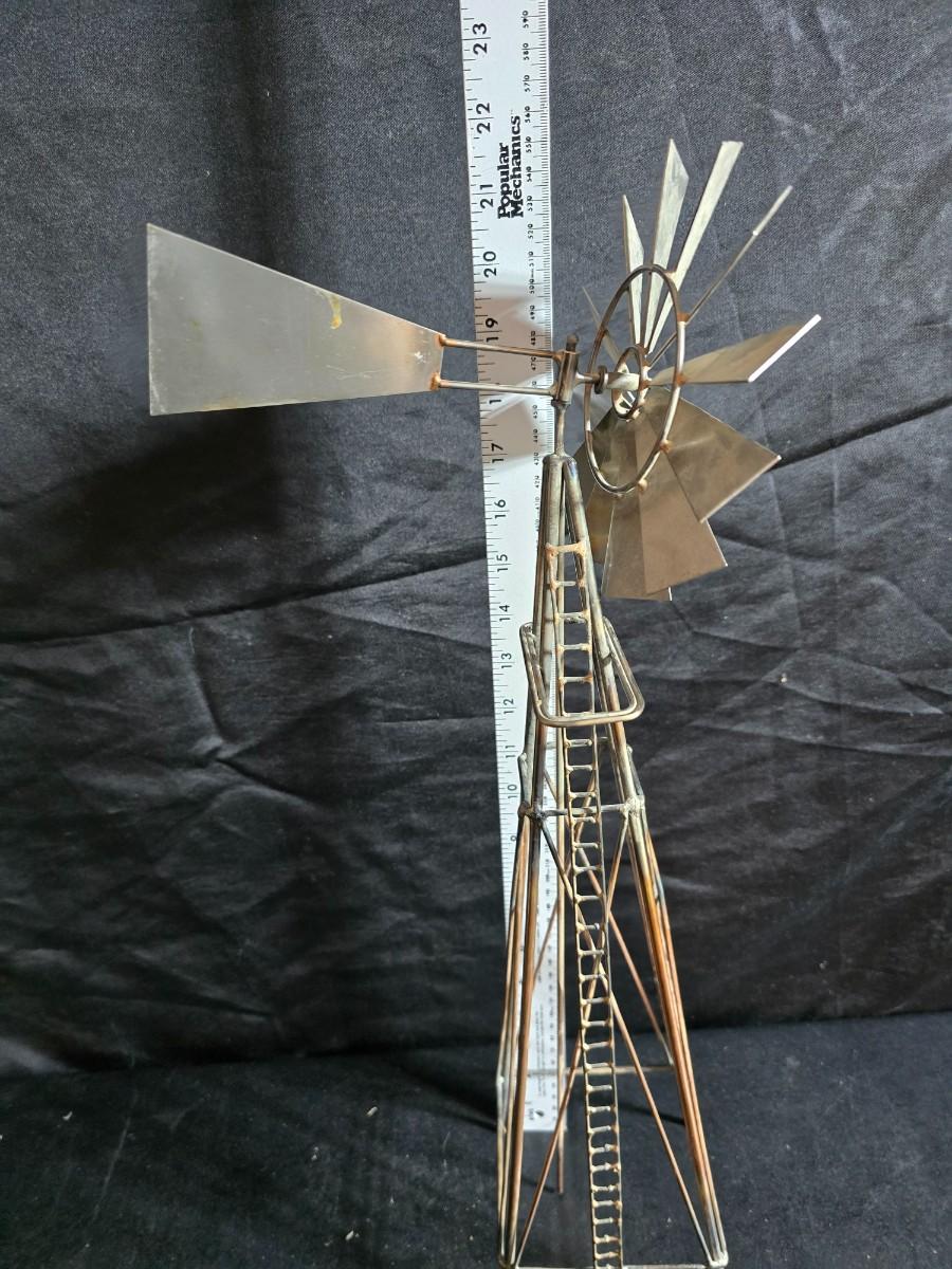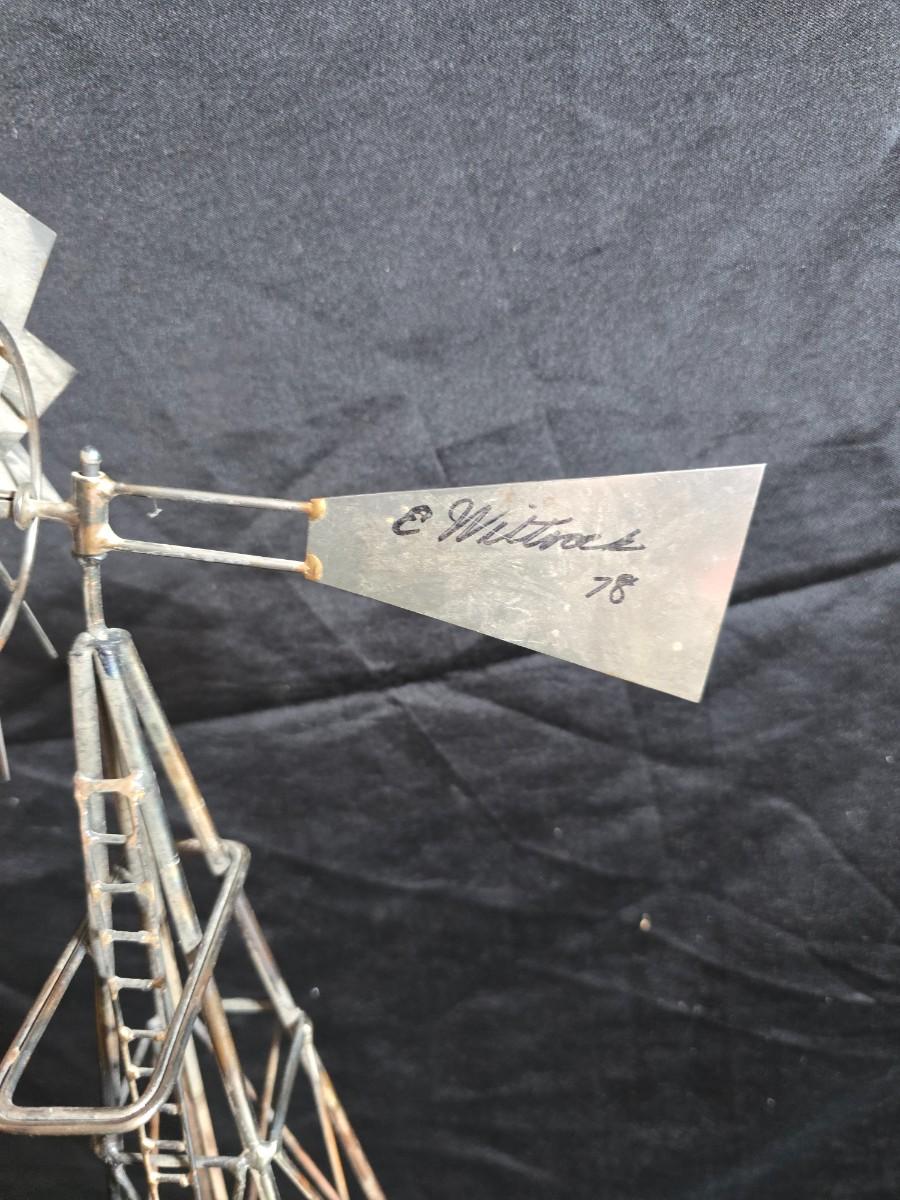 Free standing WITTROCK Metal Art Windmill 14.5", Signed Art Sculpture Wittrock 78, 1978 - with framed artwork, coasters and more