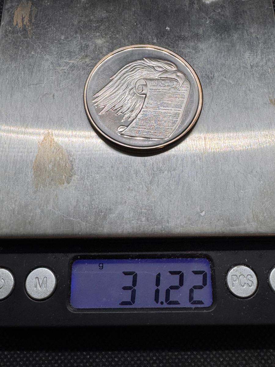 Weighs 31.22 grams - a tad more than 1 Troy ounce.