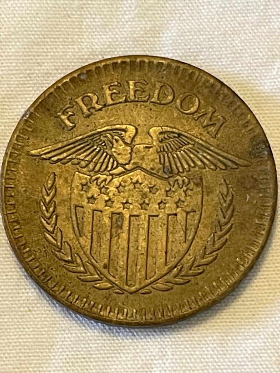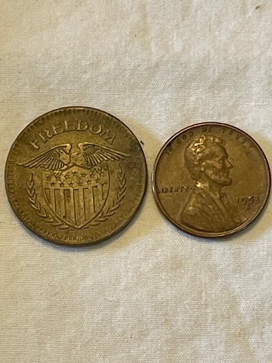“FREEDOM” ARCADE AMUSEMENT BRASS TOKEN. 1953 LINCOLN WHEAT PENNY