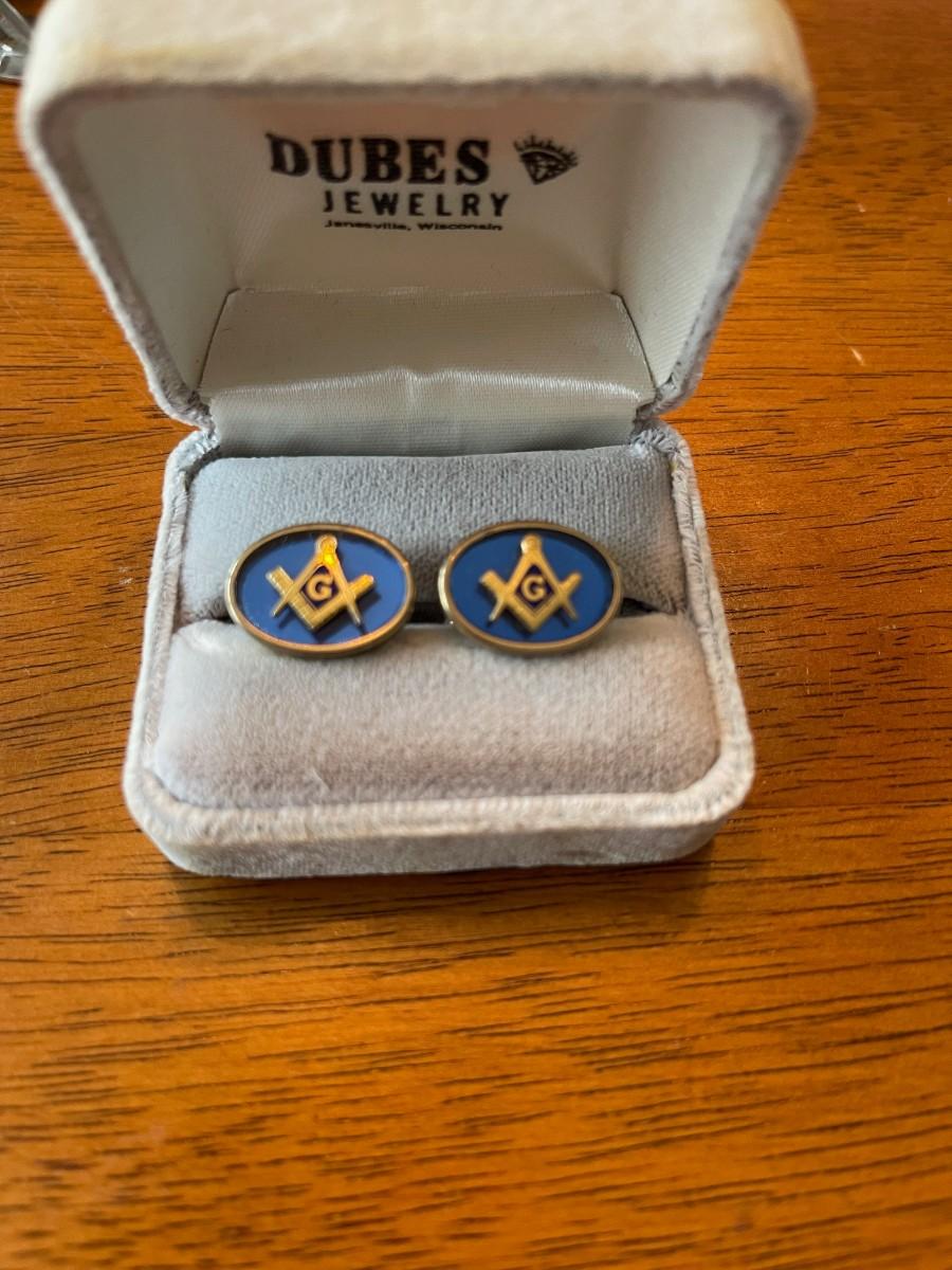 Nice pair of Men's Freemason cufflinks in jewelry box