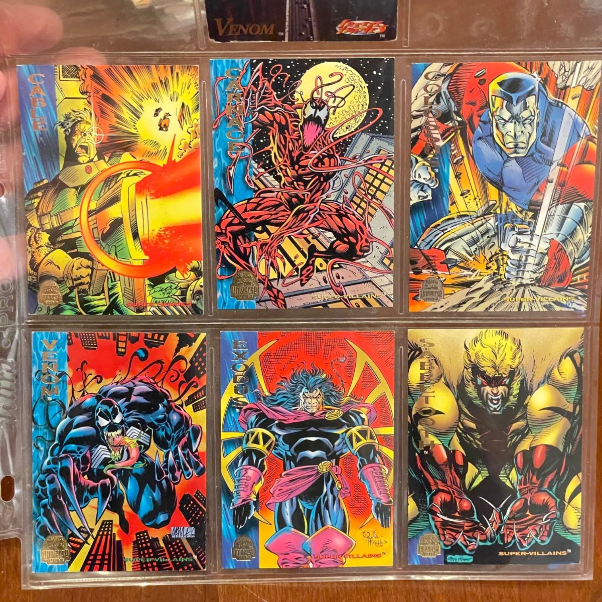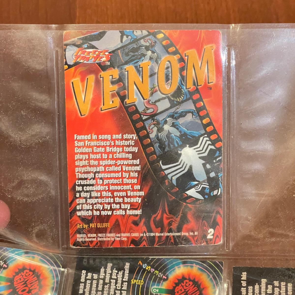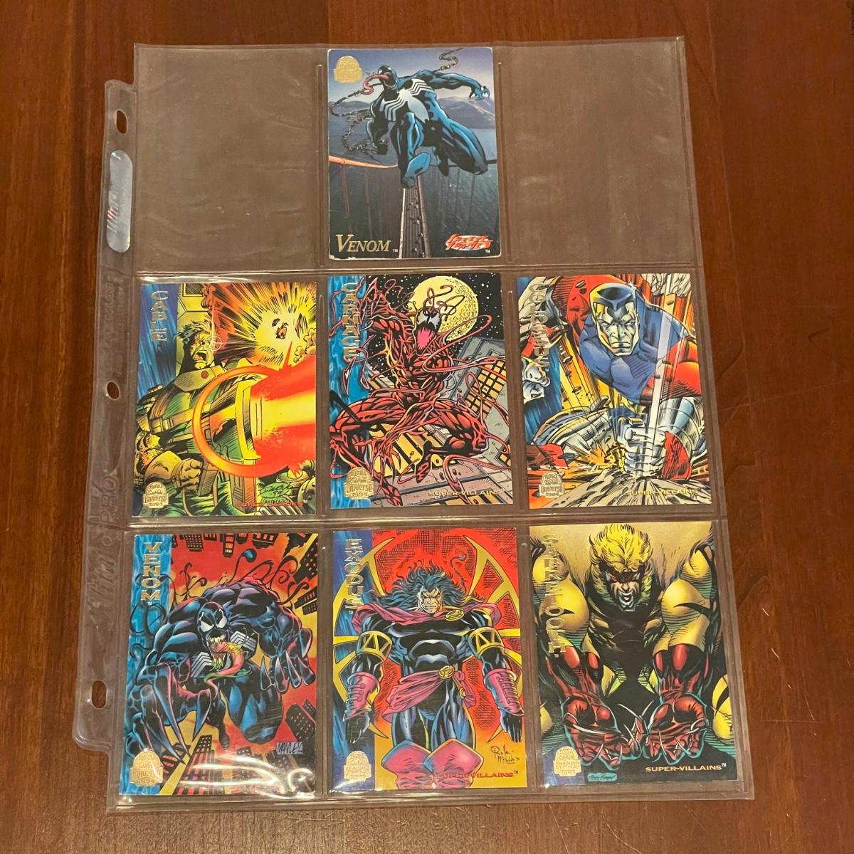 One Freeze Frames Venom 1994 card plus six more 1994 Marvel Universe Super-Villians trading cards - Carnage, Venom, Cable, Colossus, Exodus and Sabertooth. See images. Shipping available.