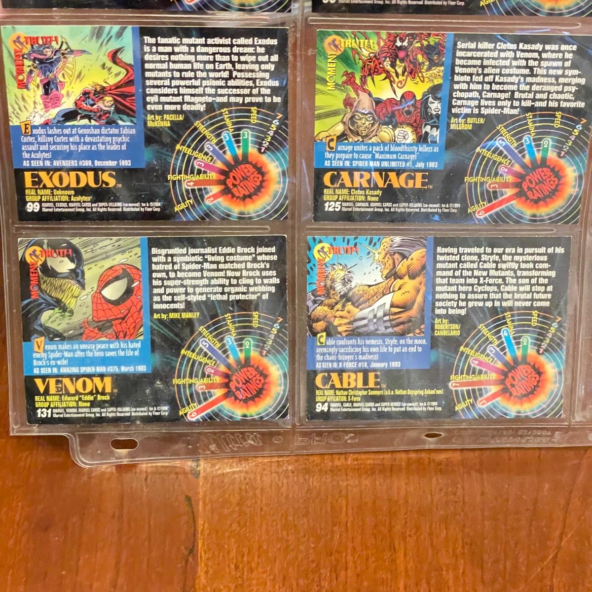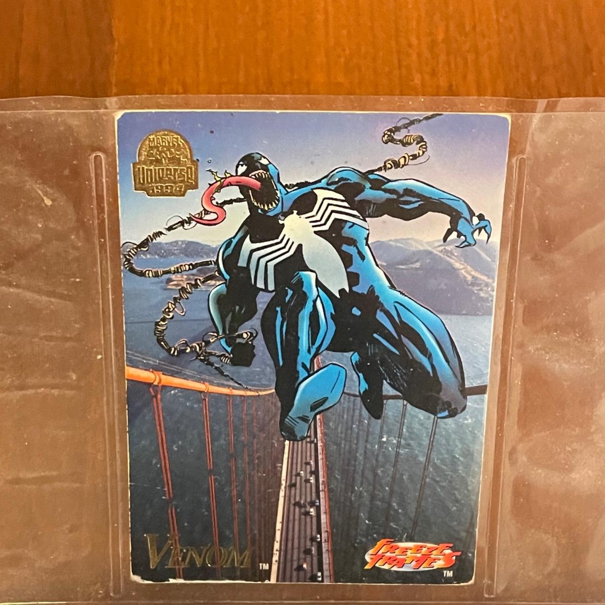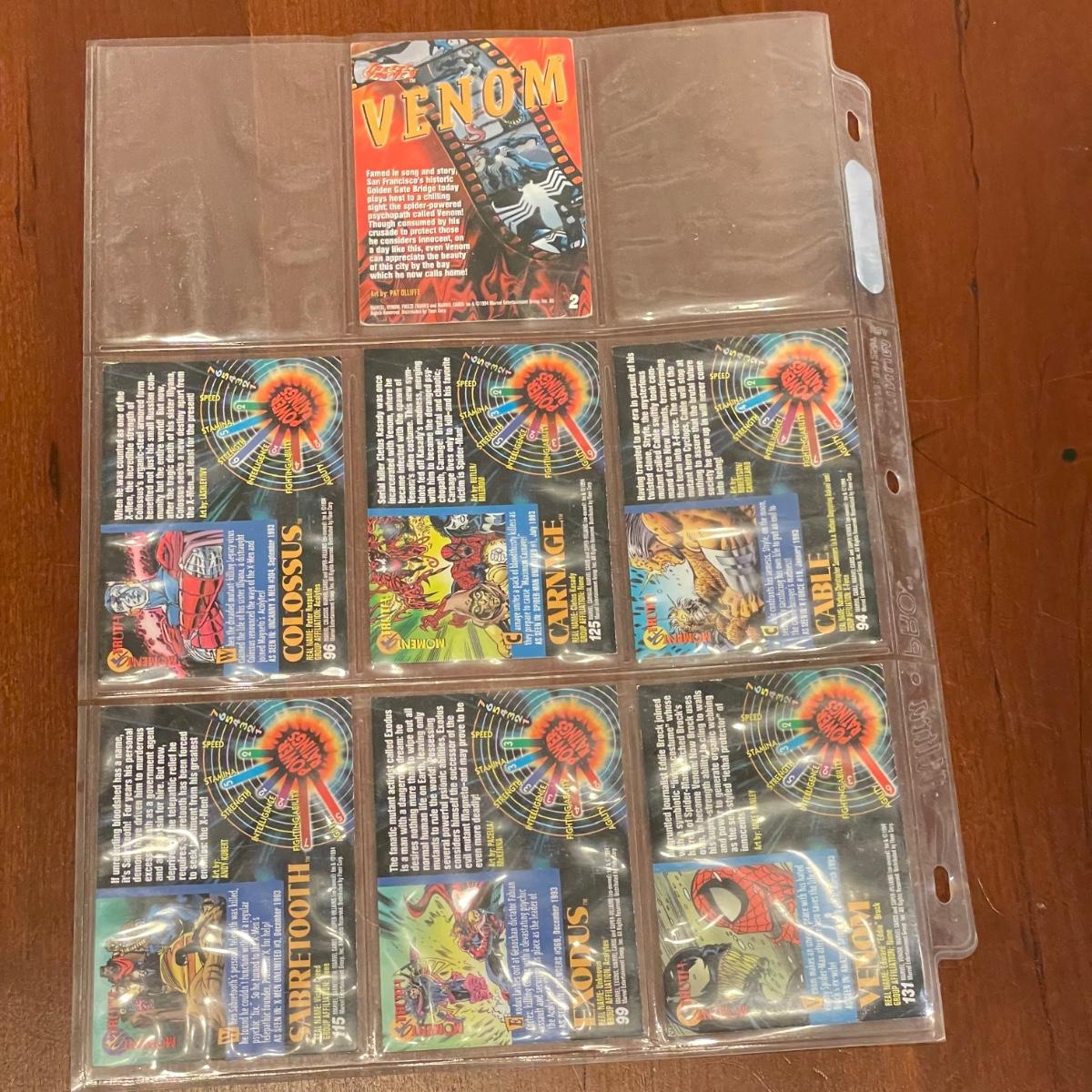 One Freeze Frames Venom 1994 card plus six more 1994 Marvel Universe Super-Villians trading cards - Carnage, Venom, Cable, Colossus, Exodus and Sabertooth. See images. Shipping available.