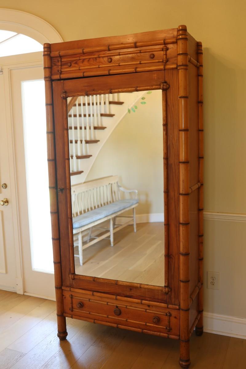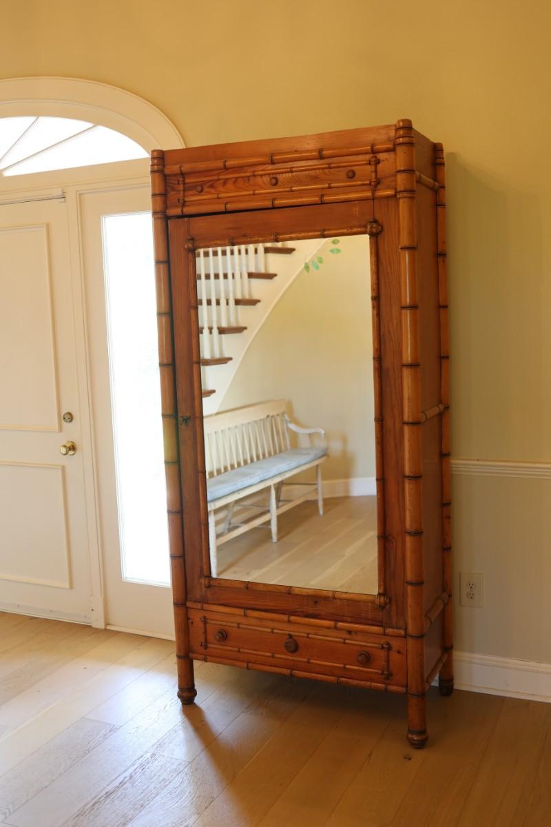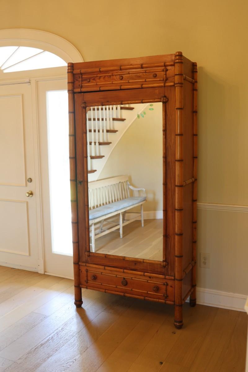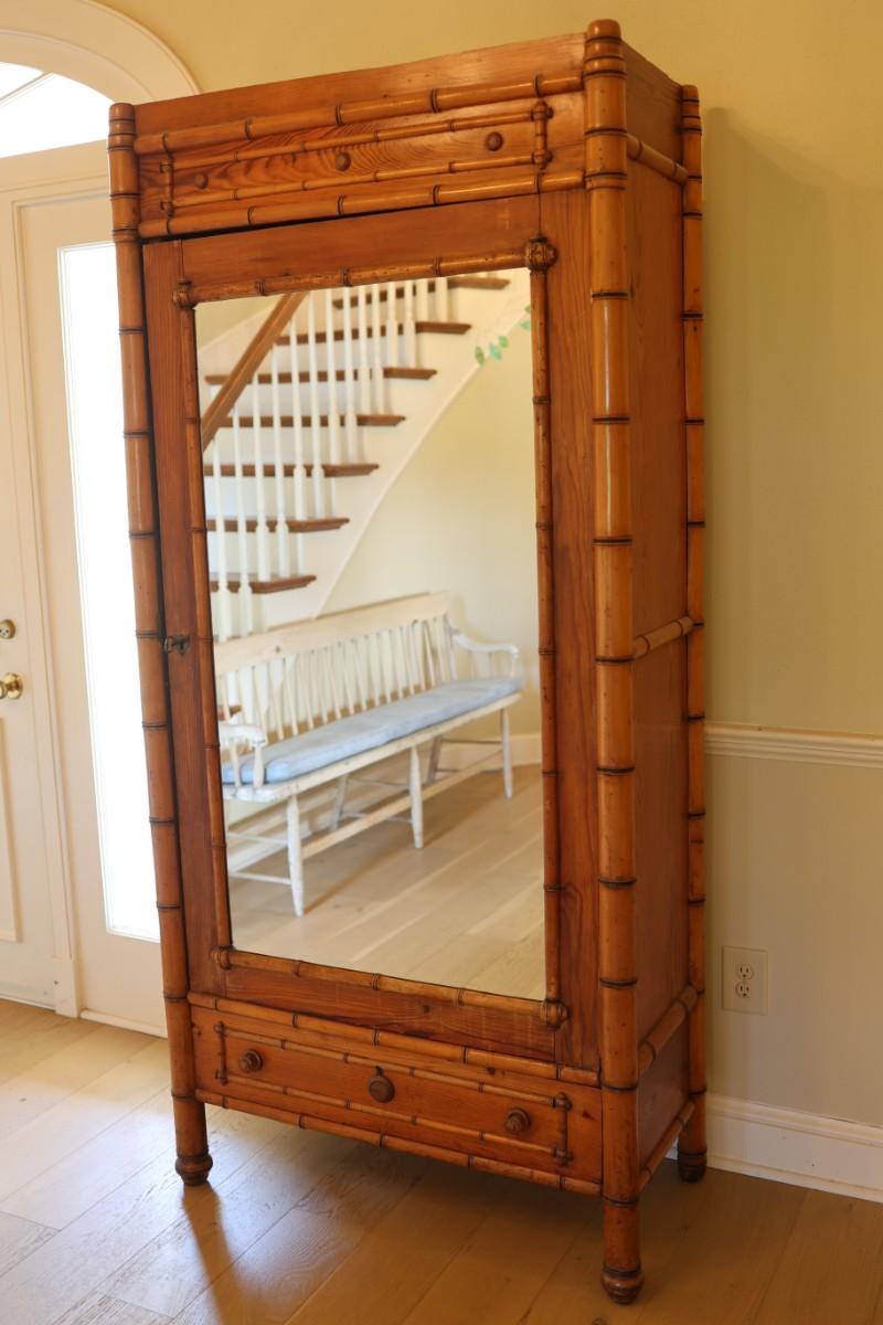 French 19th Century Faux Bamboo Cabinet with Mirrored Door