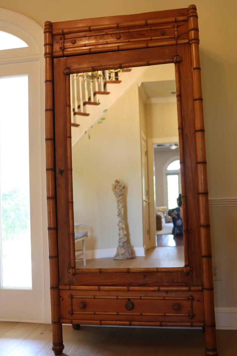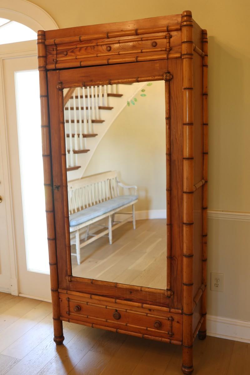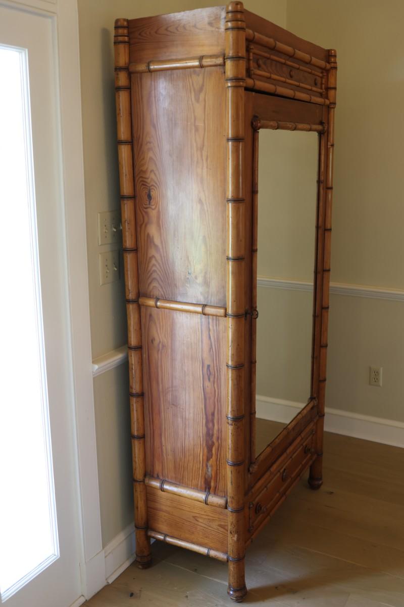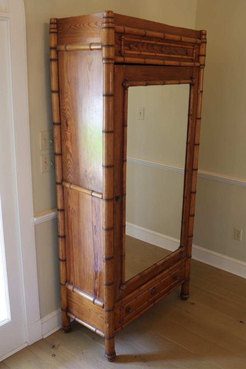 French 19th Century Faux Bamboo Cabinet with Mirrored Door