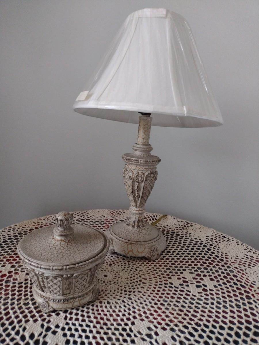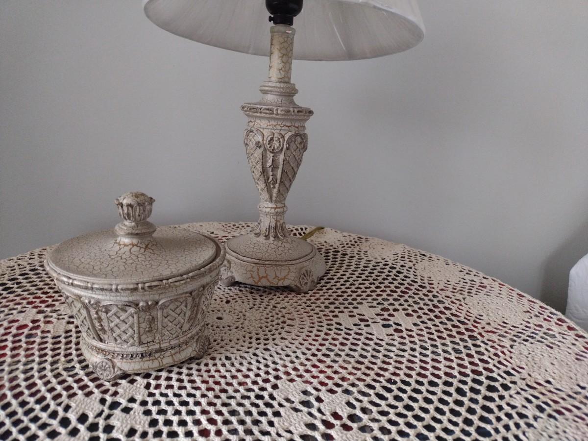 Pair of French Country Design Home Accents includes Lamp and Trinket Lidded Bowl