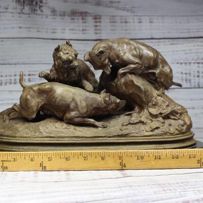 French Antique Heavy Bronze Sculpture Three Dogs Burrowing by Pierre Jules Mene