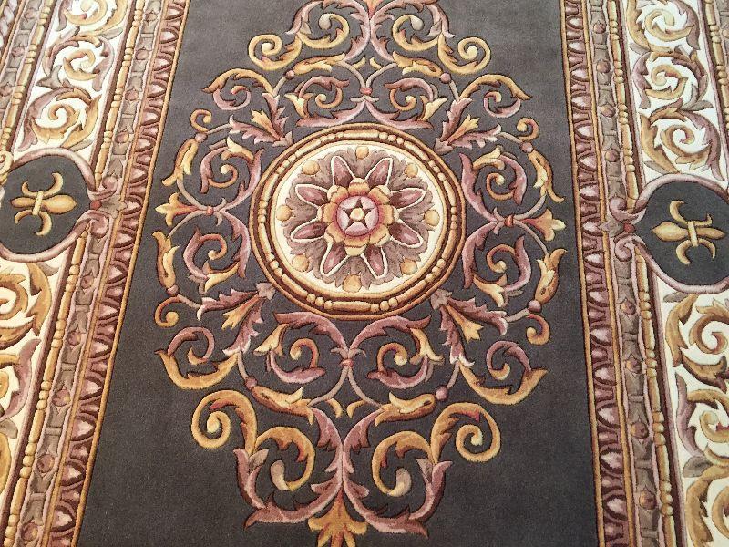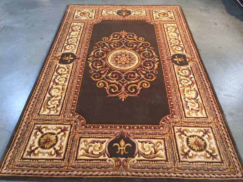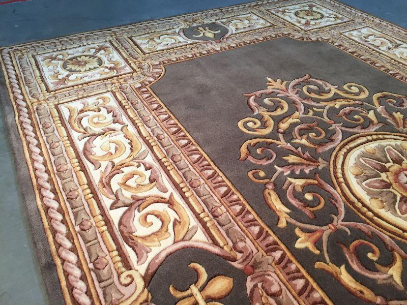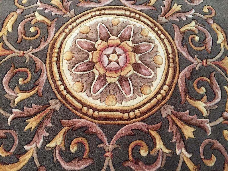 5.3x8 French Aubosson detailed Design rug 100% wool hand carved pile in Antique Green, Ivory cooper colors Hand Tufted in China
