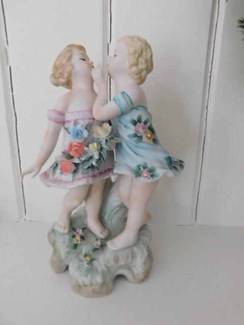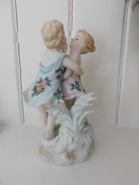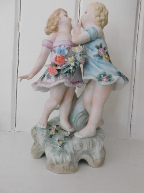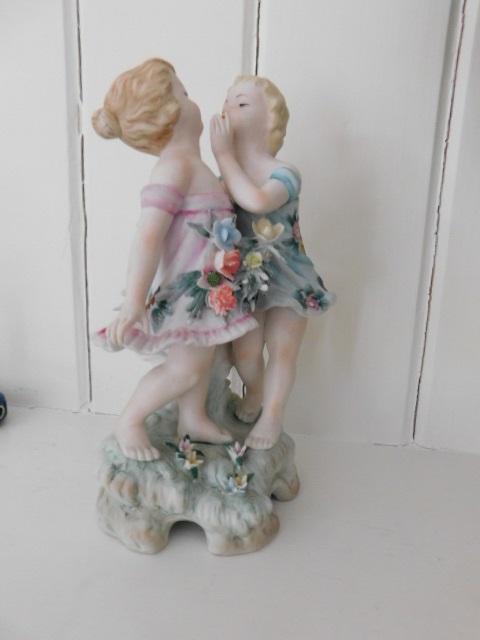 French Ceramic Statuette of Flower Dressed Girls 9"