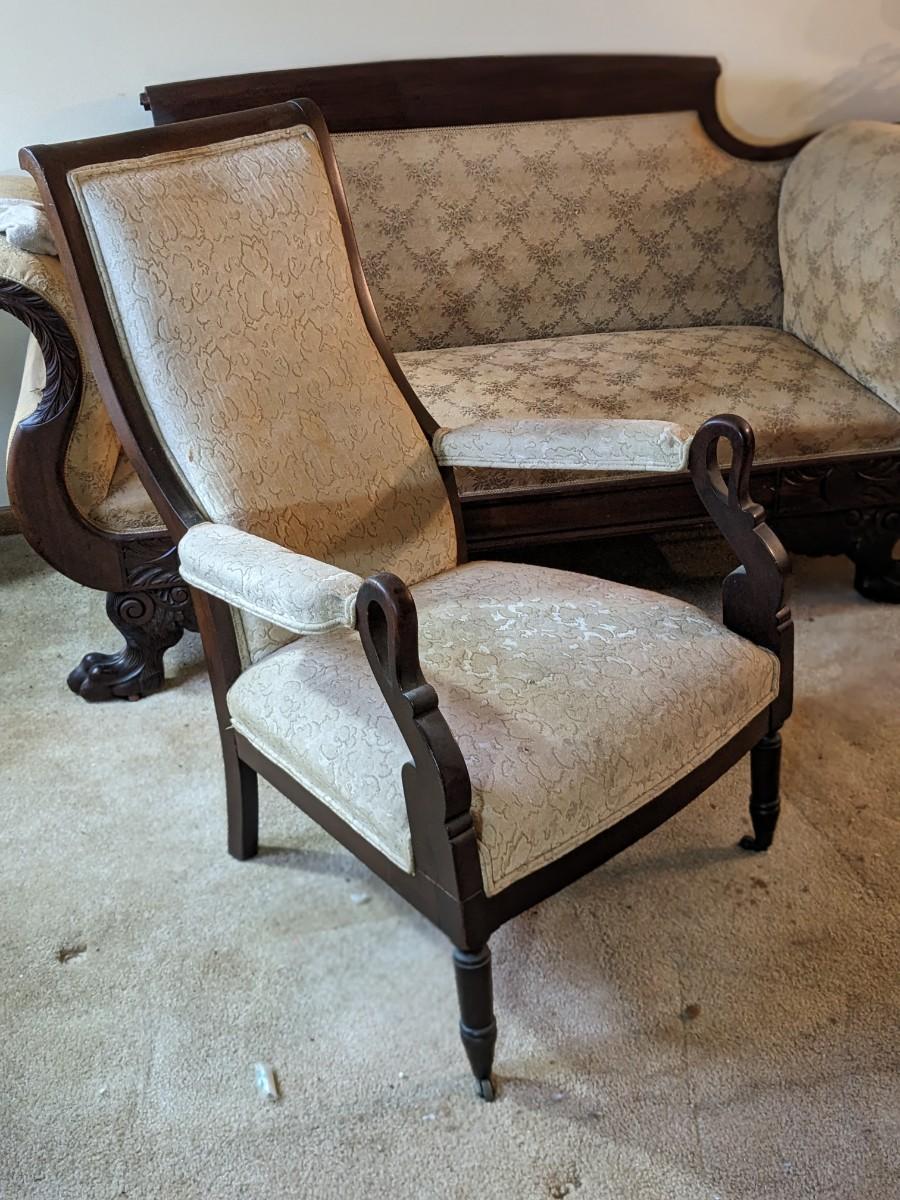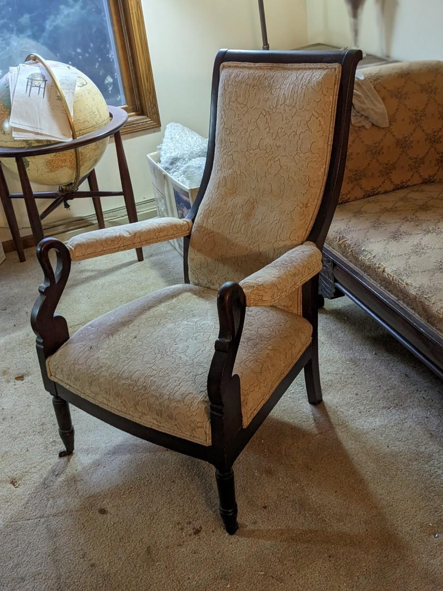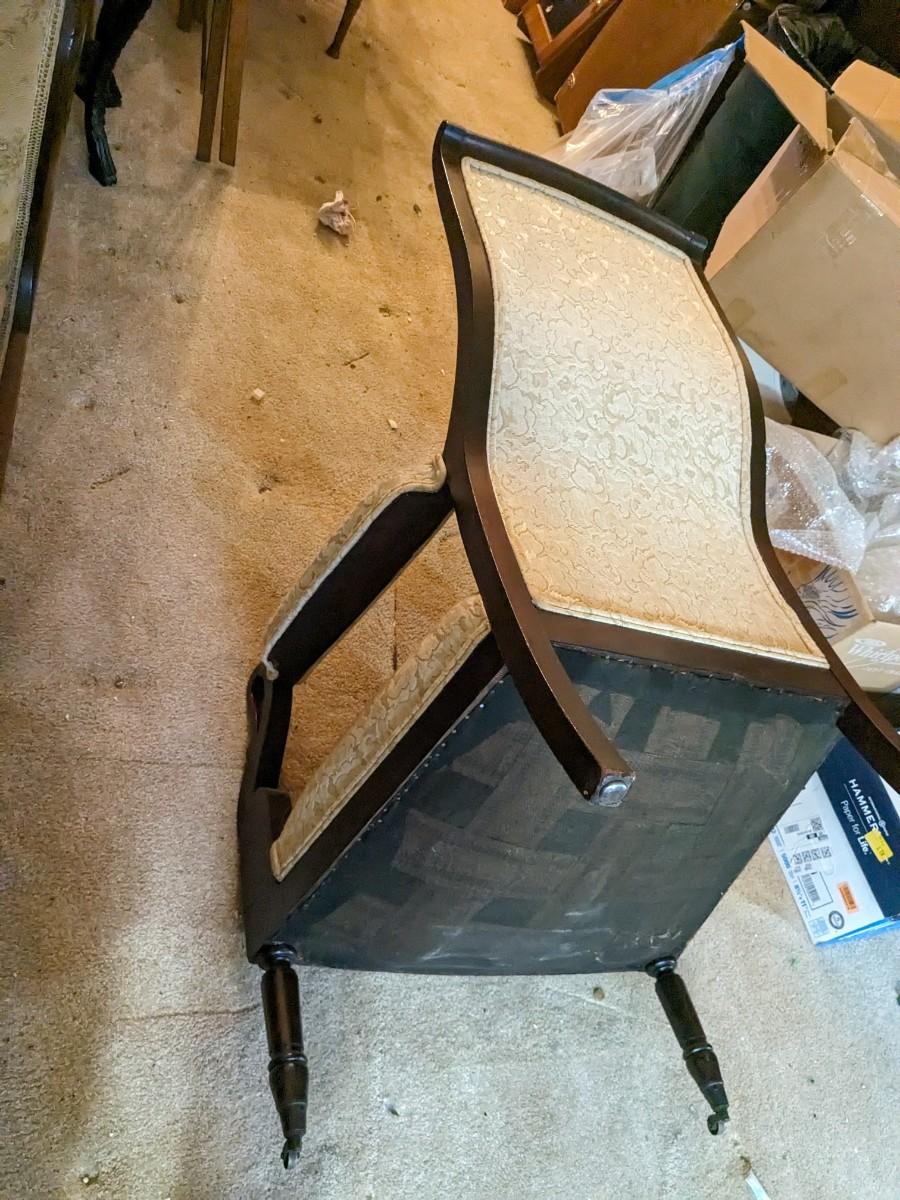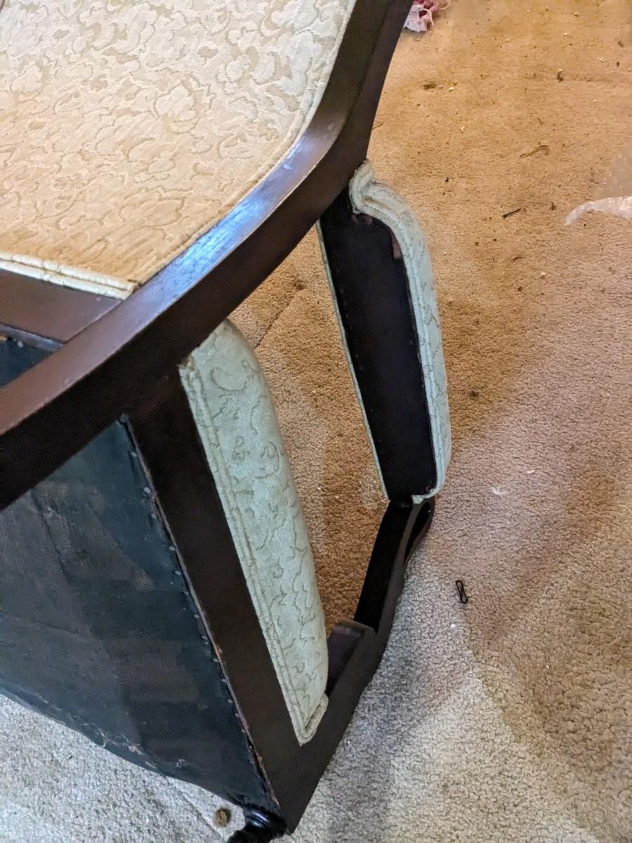 This chair is in great condition, upholstery, wood, joints are all in excellent shape.