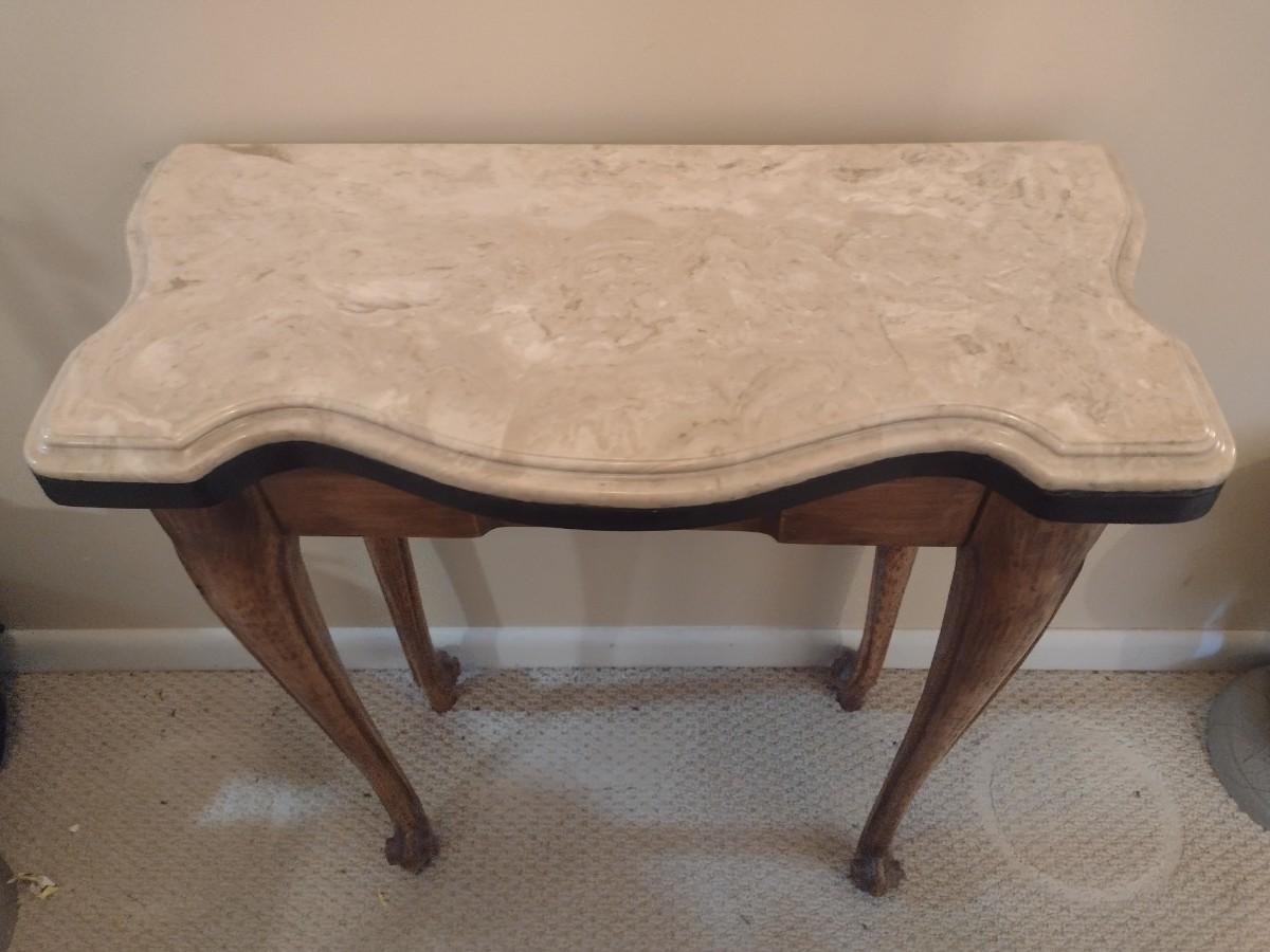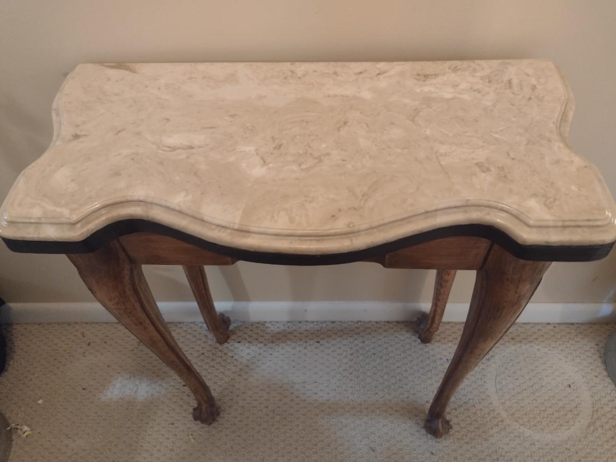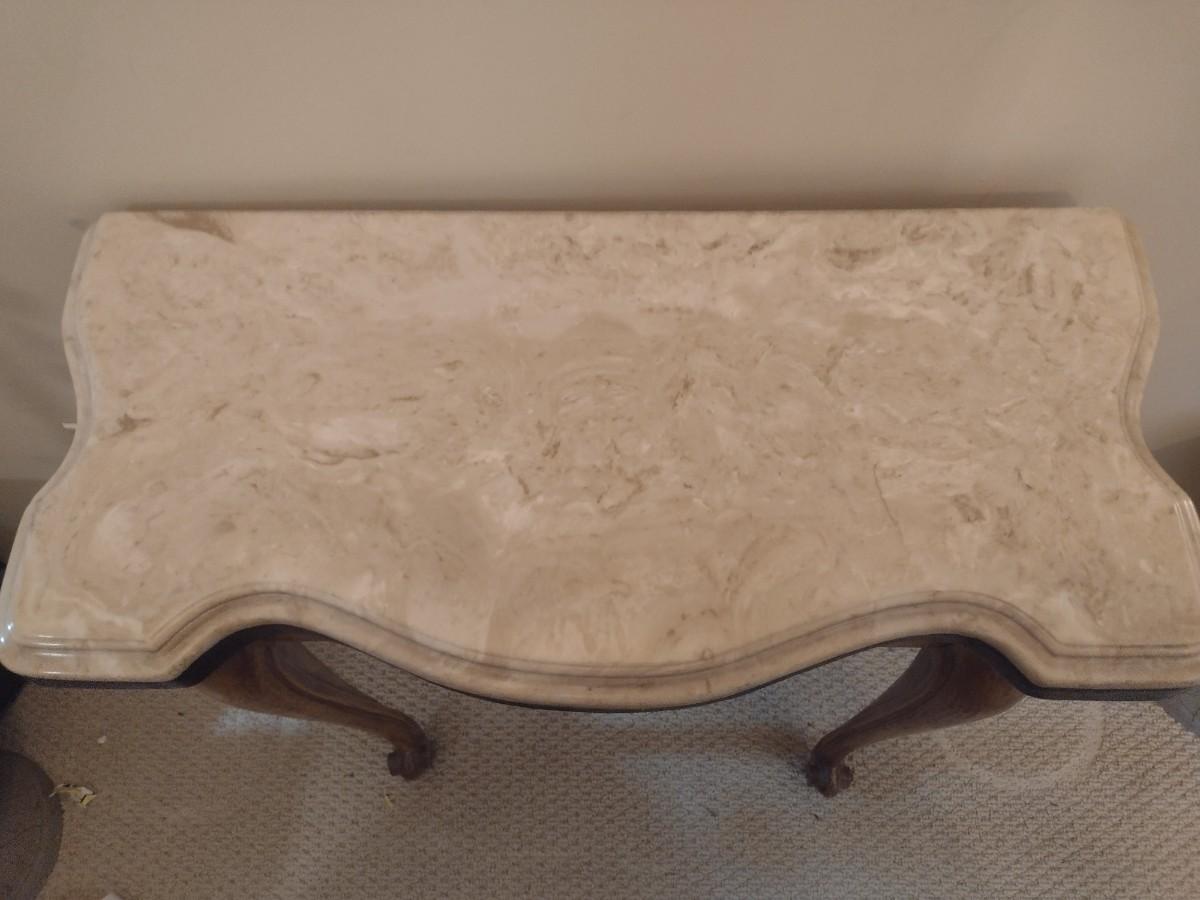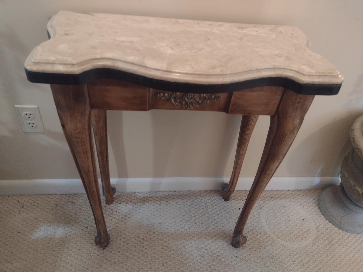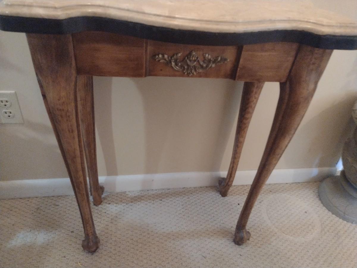 French Country Design Marble Top Foyer or Accent Table