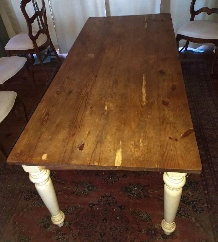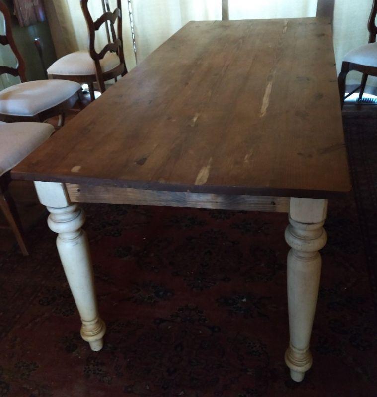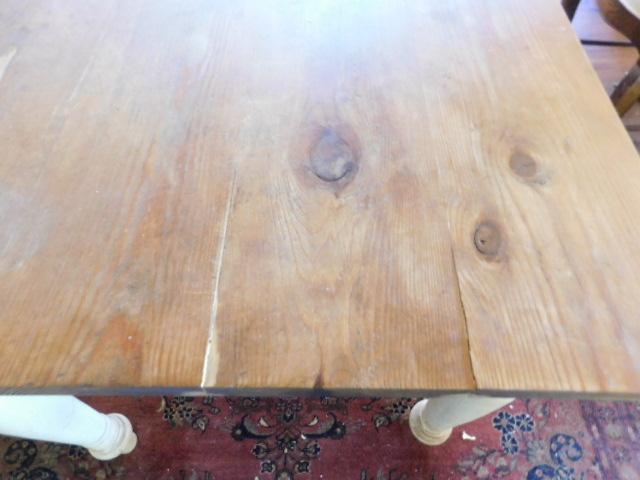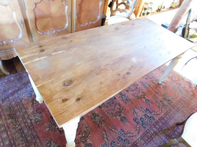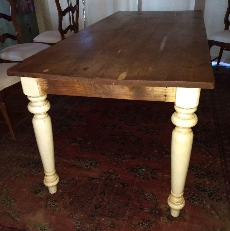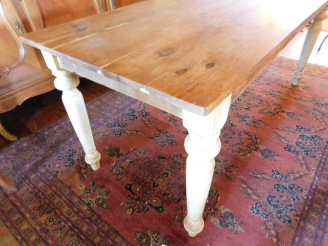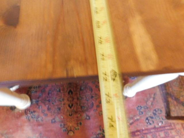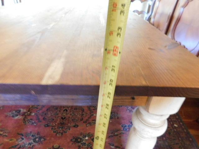 French Country Farm Table 72"x32"x30" expect some scratches or wear to finish. One end is showing a few spots of dry cracking as shown