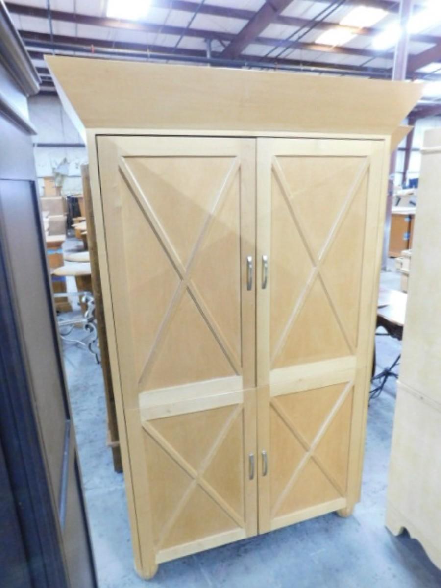 French Country Farmhouse Double Door Armoire with Sweater Drawer Cabinet Choice B. Expect some wear or scratches to the finish. Shipping option available via freight or local mover at Buyer's expense. Buyer must have all shipping scheduled within the stated dates and times of pickup. Recommended local mover is Beaty Bros. Moving 828-201-2982