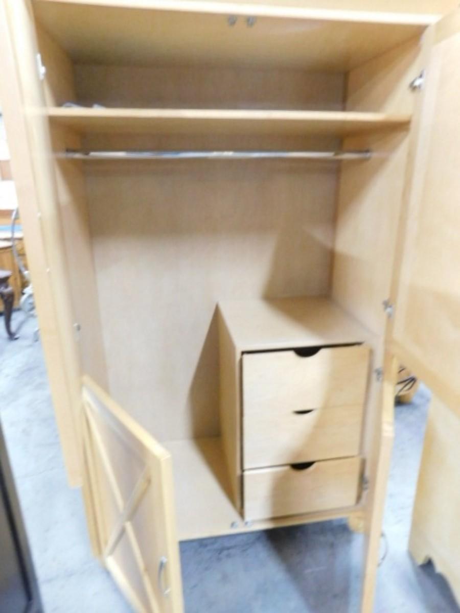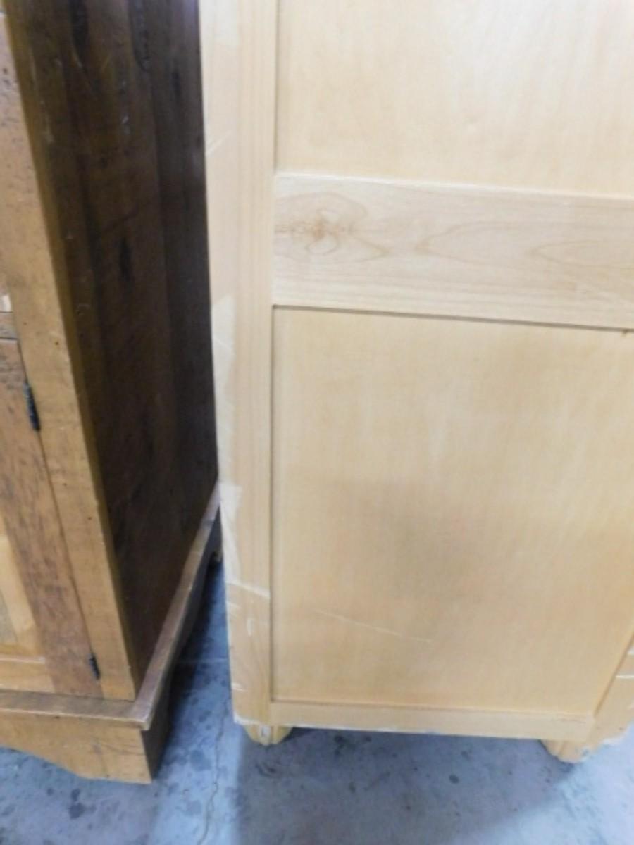 French Country Farmhouse Double Door Armoire with Sweater Drawer Cabinet Expect some wear or scratches to the finish. Shipping option available via freight or local mover at Buyer's expense. Buyer must have all shipping scheduled within the stated dates and times of pickup. Recommended local mover is Beaty Bros. Moving 828-201-2982