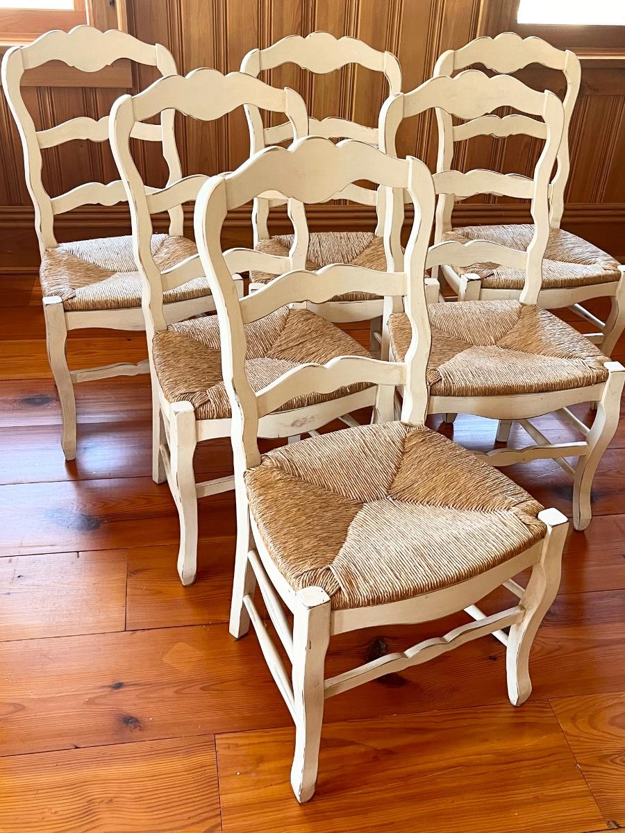 French Country Rush Dining Room Chairs ~ Set Of Six (6)