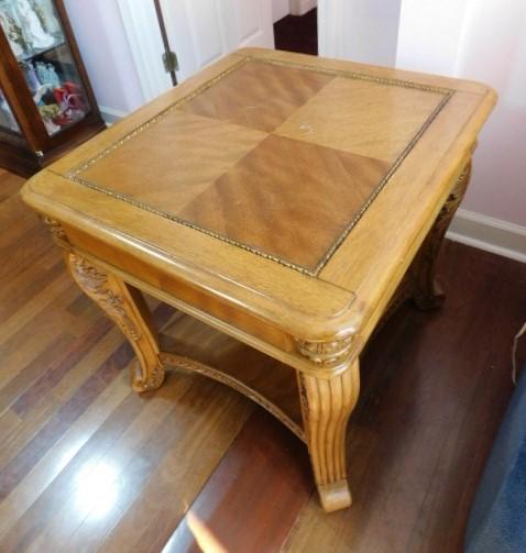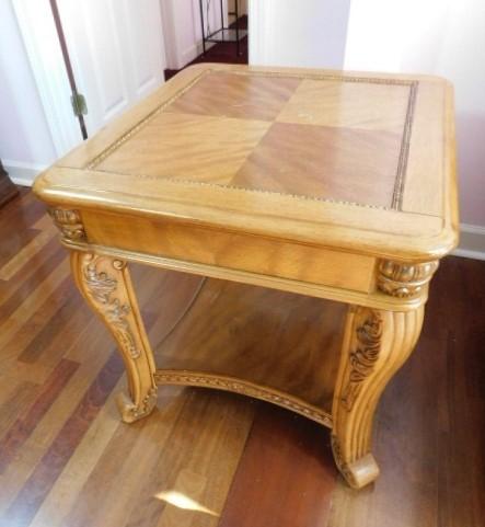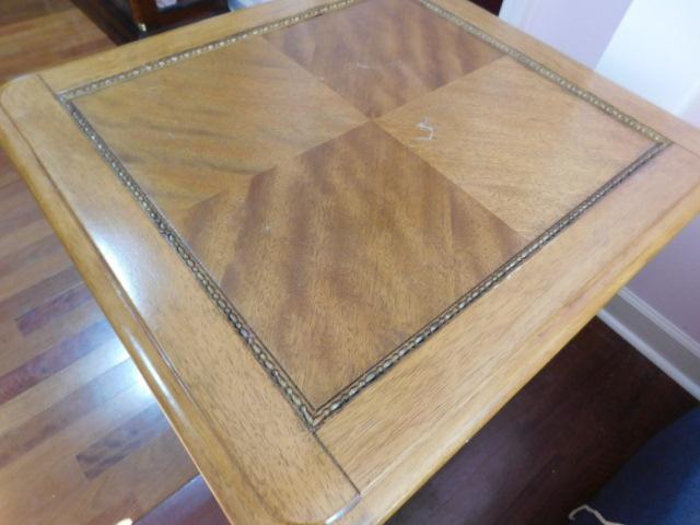 French Country Side Table Inlay Top 28"x27"x26" expect some wear or scratches to finish
