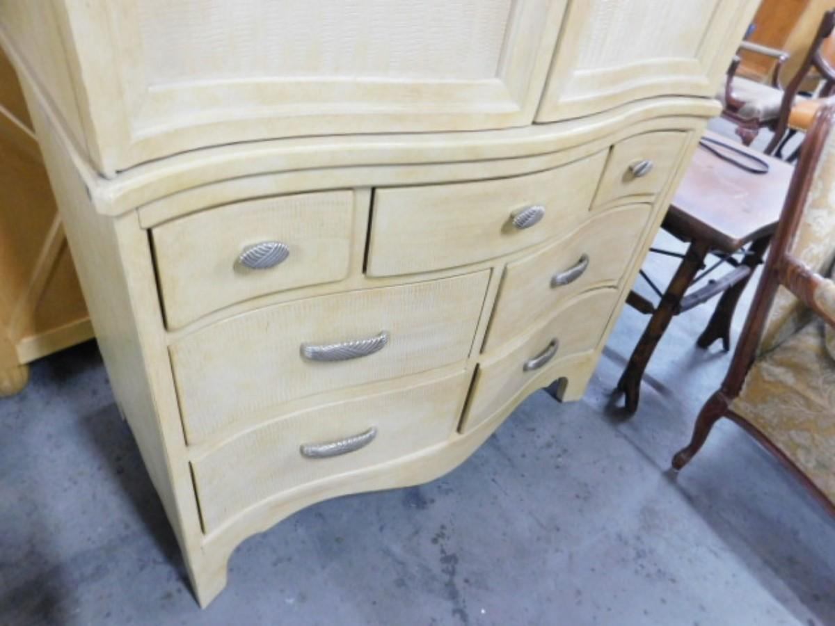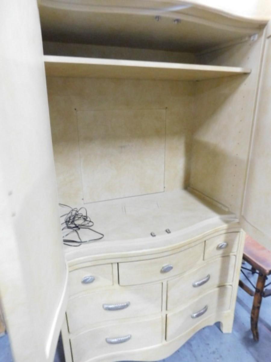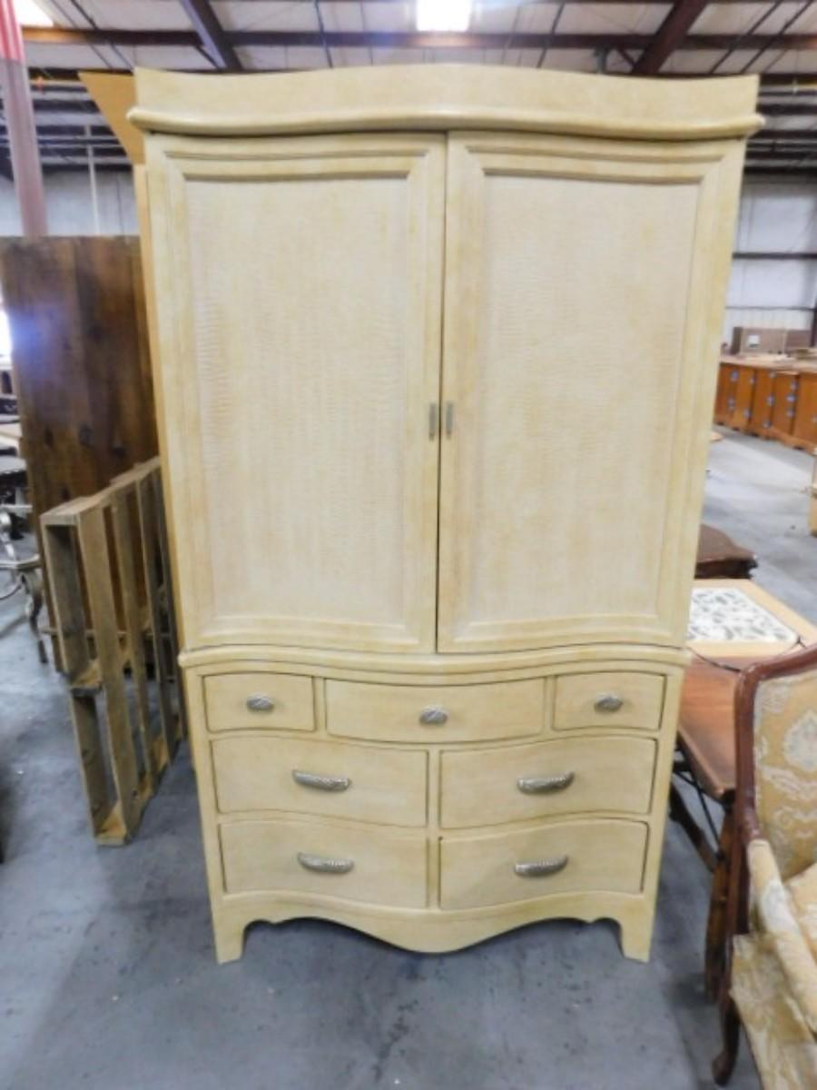 French Country Three Over Four Armoire by Century Choice A Expect some wear or scratches to the finish. Shipping option available via freight or local mover at Buyer's expense. Buyer must have all shipping scheduled within the stated dates and times of pickup. Recommended local mover is Beaty Bros. Moving 828-201-2982