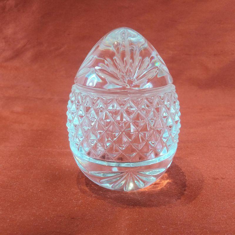 French Glass Egg - Paperweight. Very nice pressed glass paperweight - marked made in France. It measures 3 1/2-inches tall and is quite impressive for its size.