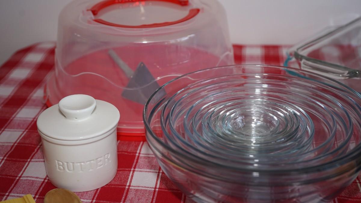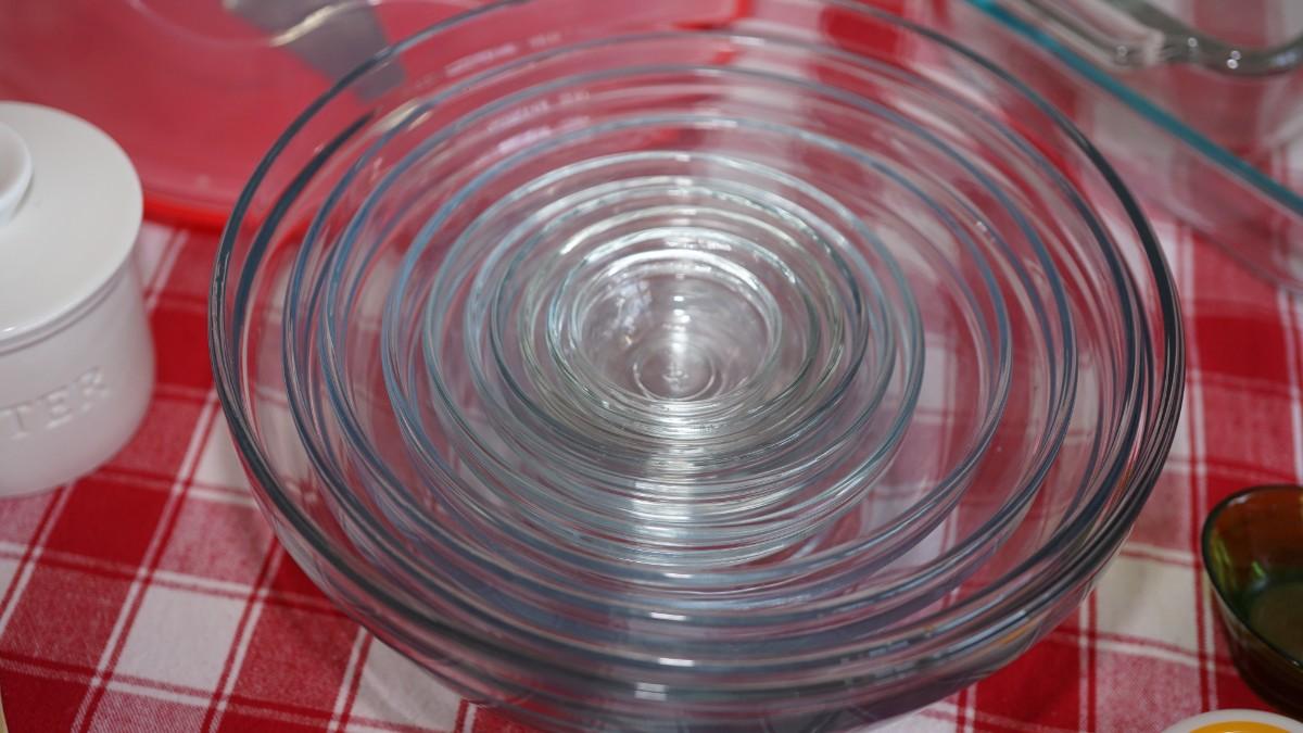 FRENCH GLASS NESTING BOWLS , PYREX , OXO UTENSILS & BAKING TOOLS