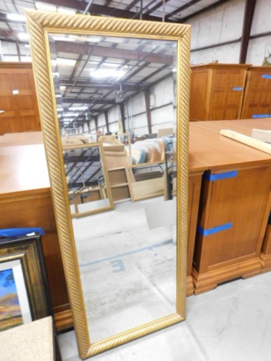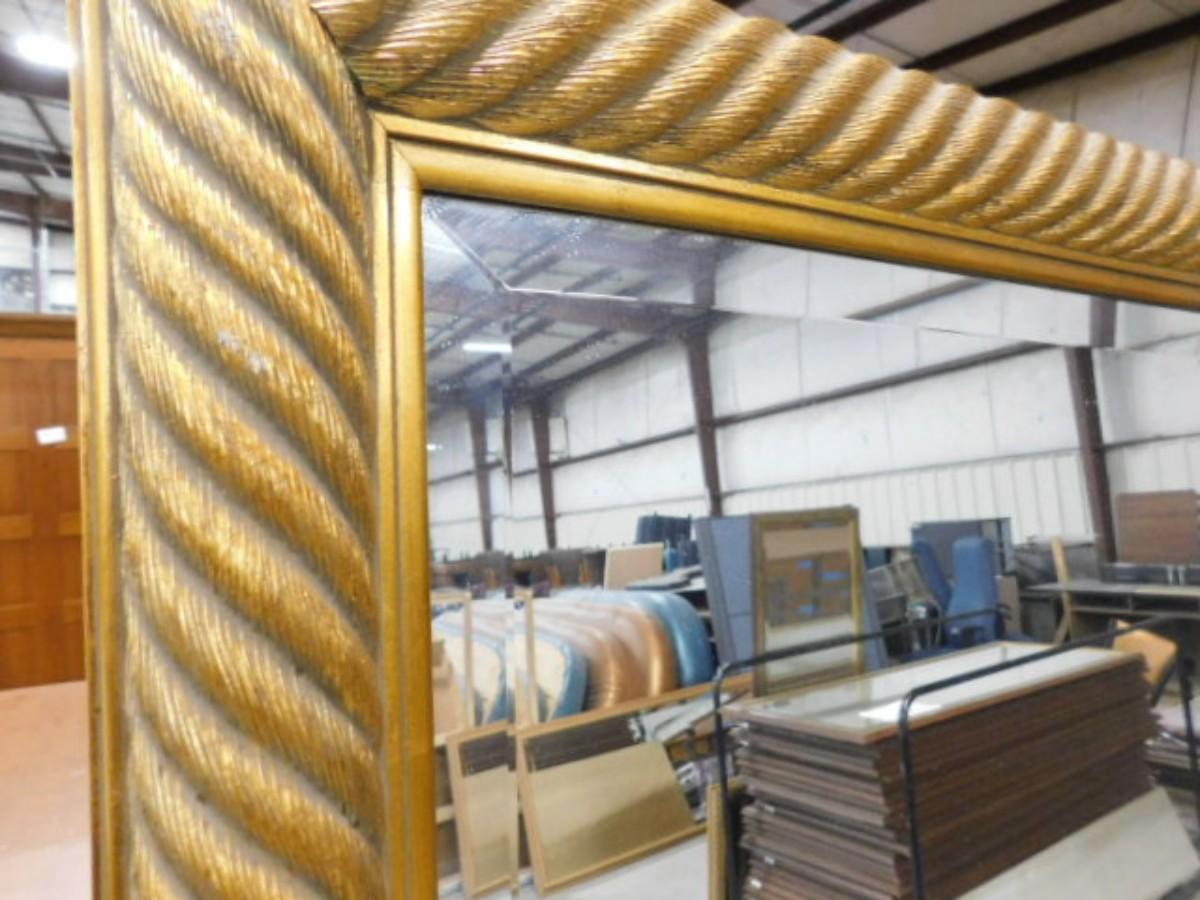 French Gold Rope Frame Full Length Beveled Glass Wall Mirror Choice A Expect some wear or scratches to the finish. Shipping option available via freight or local mover at Buyer's expense. Buyer must have all shipping scheduled within the stated dates and times of pickup. Recommended local mover is Beaty Bros. Moving 828-201-2982