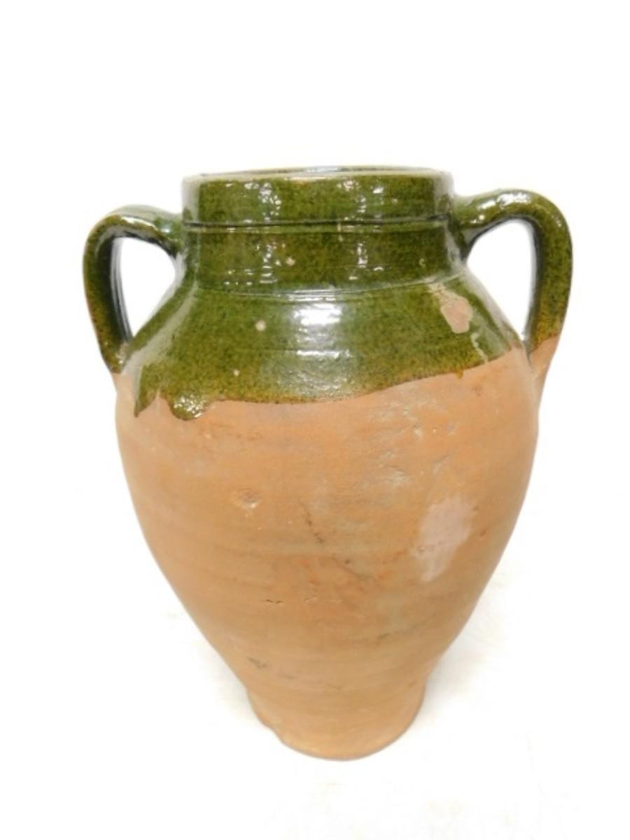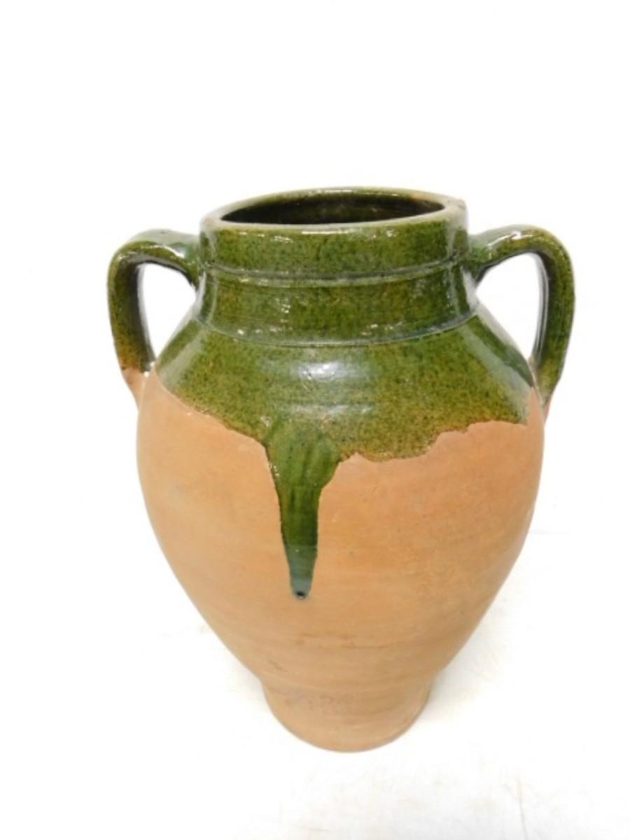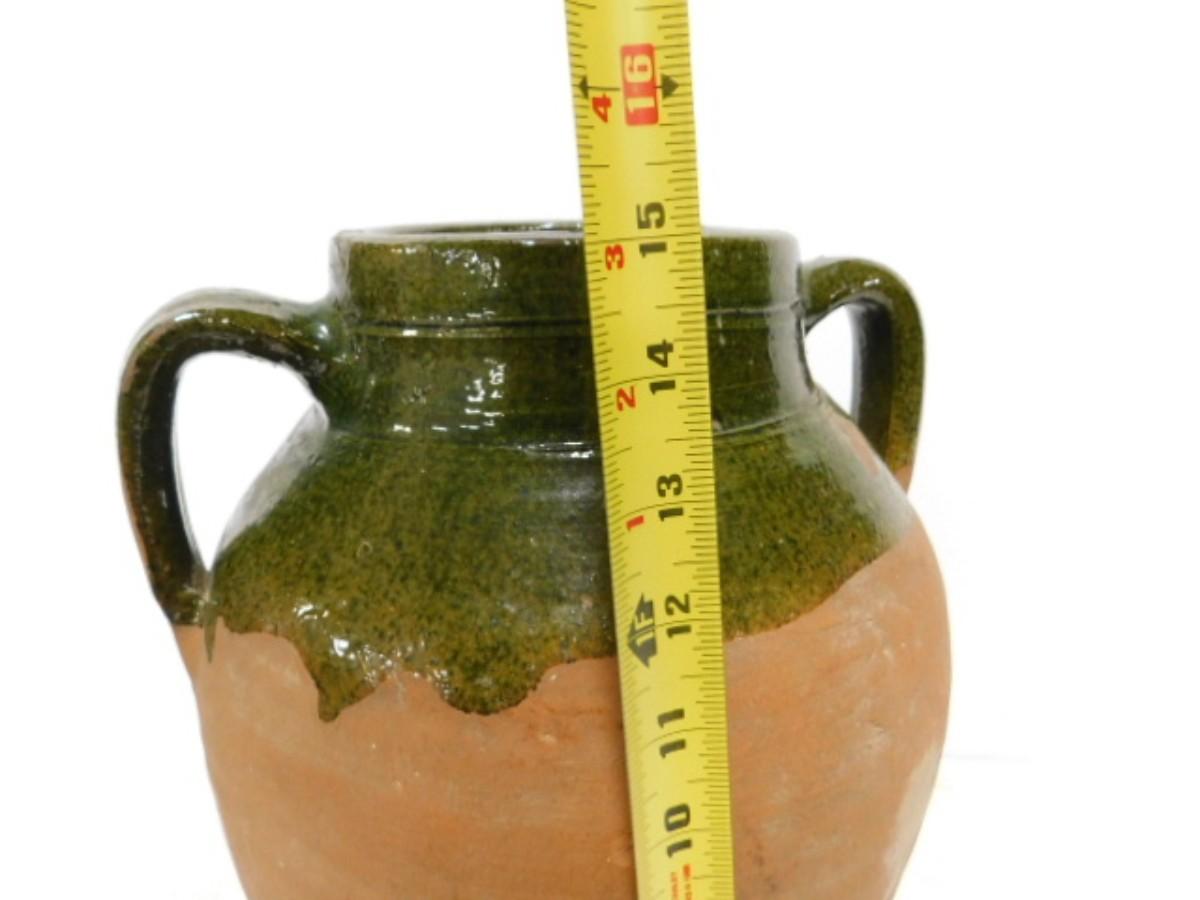 French Green Glaze Terra Cotta Double Handled Confit Pot. Third party shipping only. Firm will ensure item is properly delivered to shipper of your choice in the 28792 zip code area.